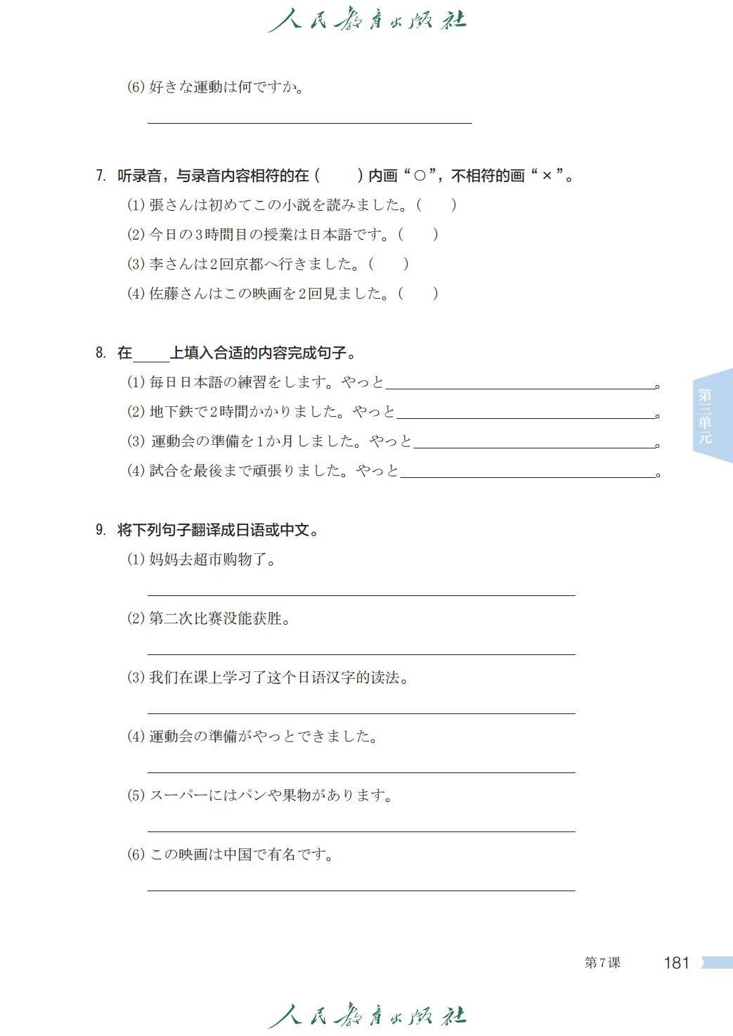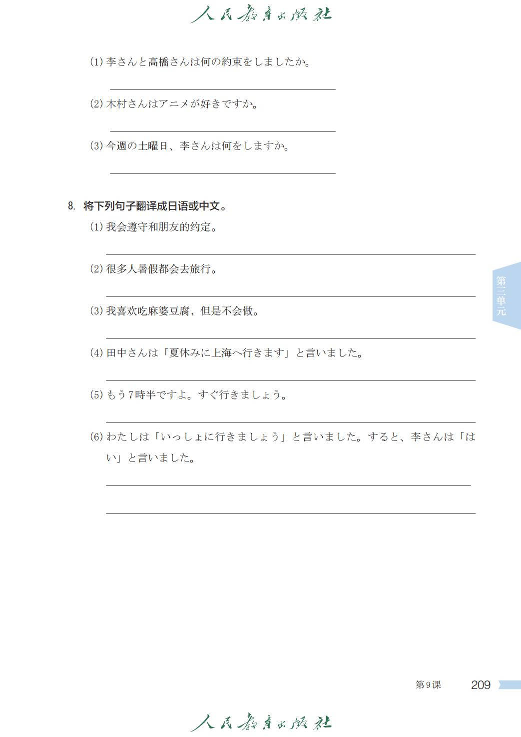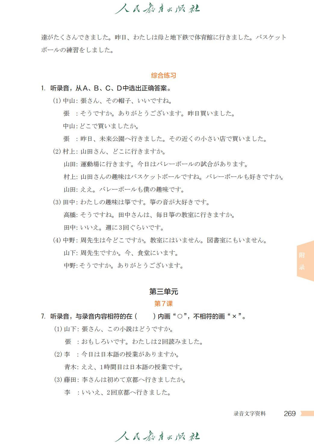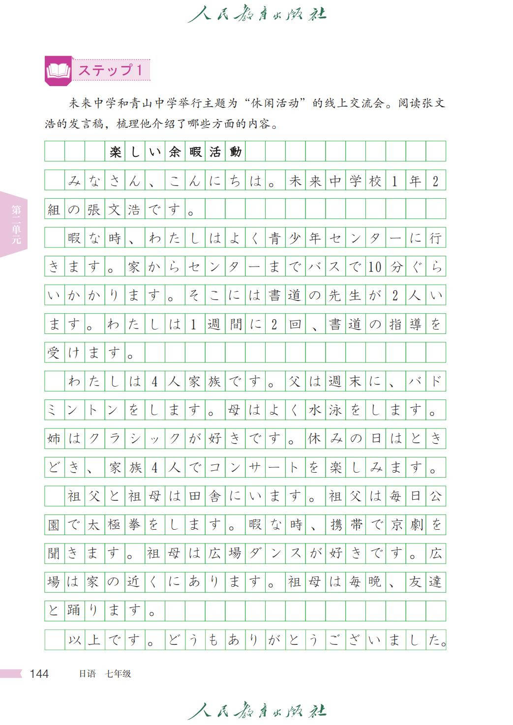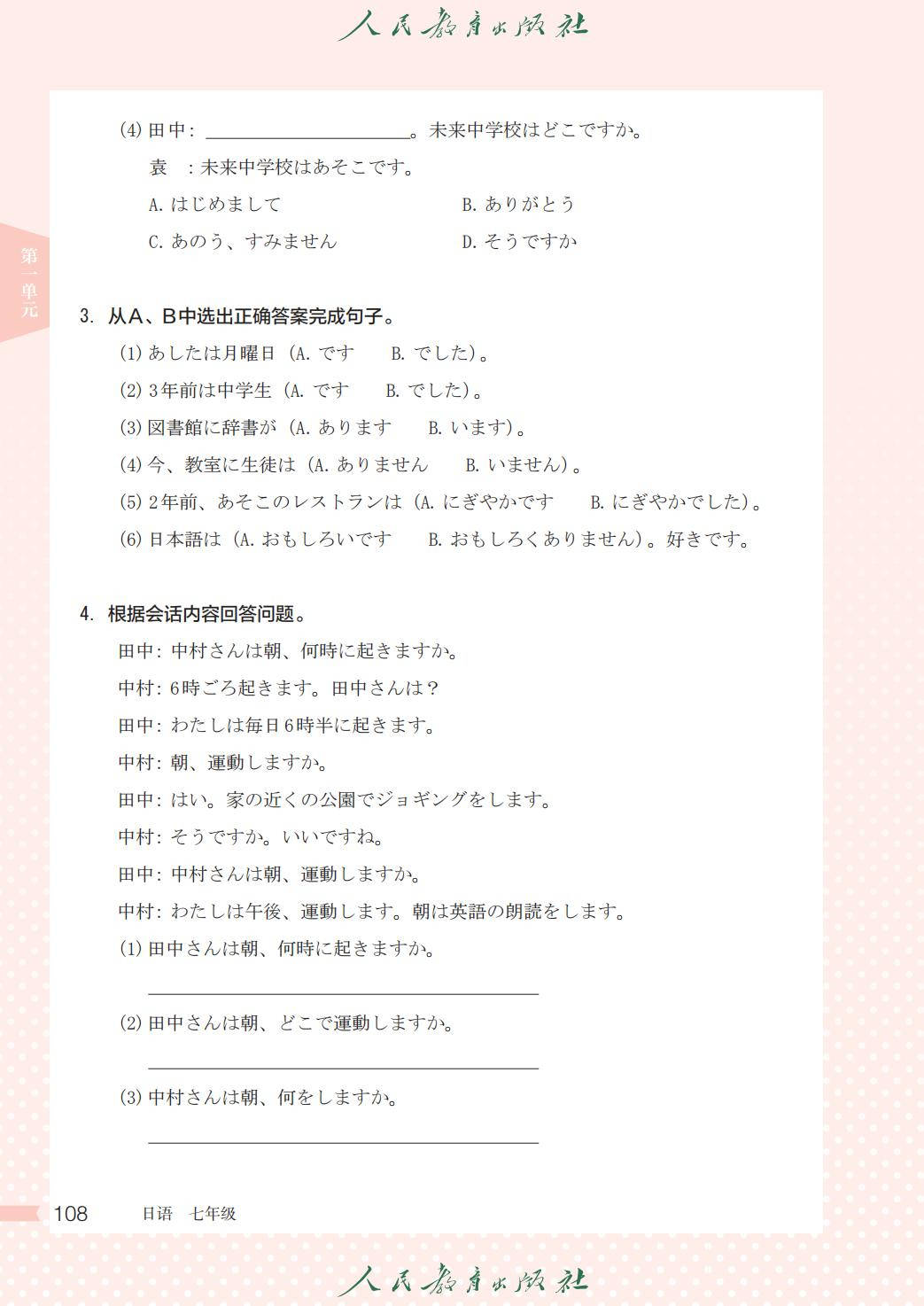 人教版七年级日语全一册电子课本图片版在线阅读