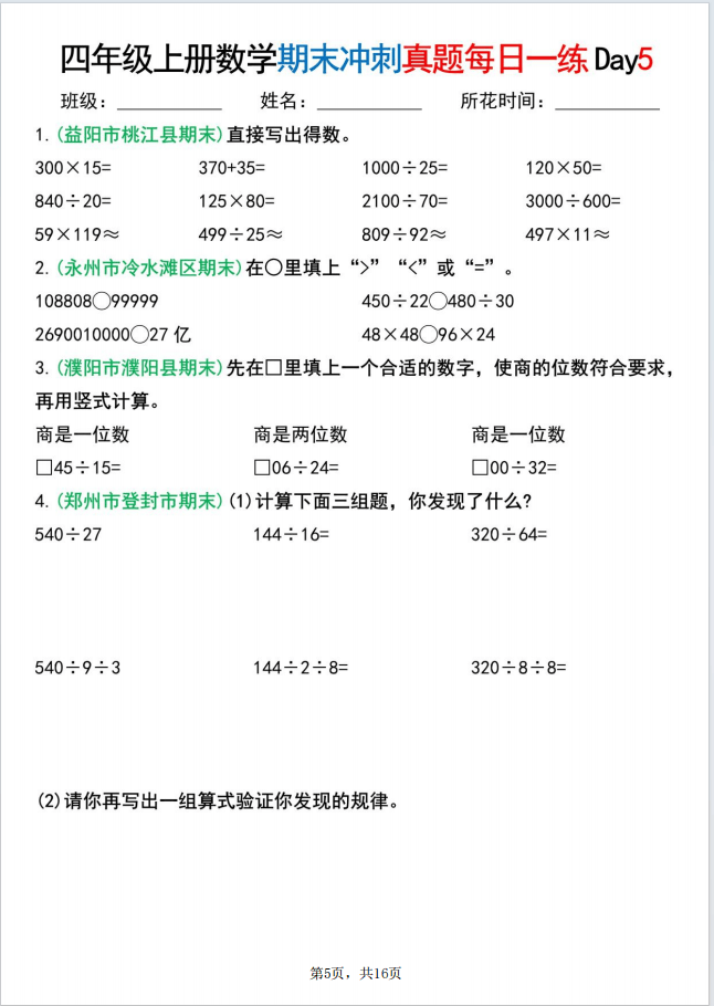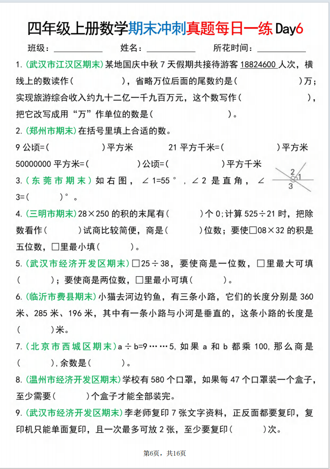刷题不在多,在于精准!跟着这份《期末复习真题每日一练》,每天练一页真题,帮孩子摸清考试规律、吃透解题方法,期末数学轻松冲刺高分!