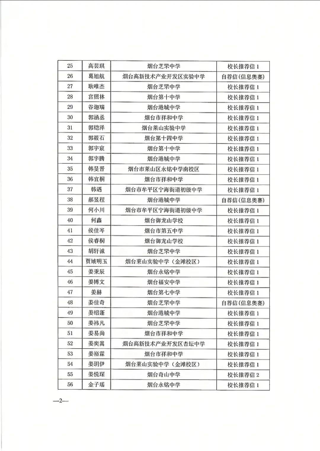 说明:满足以上(1)(2)(3)条其中之一即可获得初中学校推荐资格,满足第(4)条可获得自荐资格。
