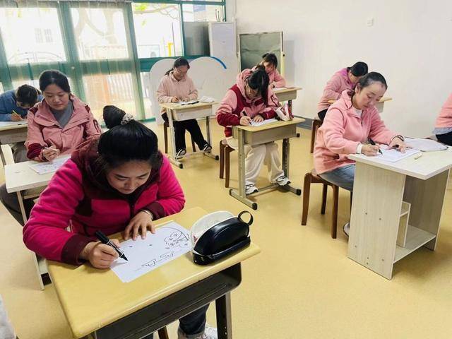 本次比武设置笔试、简笔画、现场答辩、无生教学四个环节,全面考察教师的专业素养与实践能力。笔试环节聚焦学前教育政策法规、专业理论知识、卫生保健常识等核心内容。考场上,教师们凝神聚力、认真作答,将培训所学与日常积累充分结合,在笔尖流转间展现扎实的专业积淀。