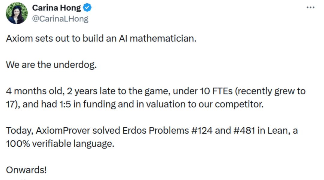 创业第四个月,洪乐潼领着不到十人、核心仅四人的小队,把Axiom Prover推到线上——IMO银牌级几何题,输入即出证明,计时以分钟计,并接连攻克两道悬而未决的数学难题,震惊数学圈与AI圈: