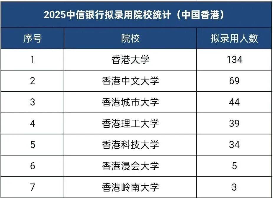 香港高校这么抢手不是没道理的——离内地近,教学又结合了国际金融理念,培养出来的学生既懂国内业务,又会跟外国人打交道。这样的毕业生,中信银行当然特别喜欢。