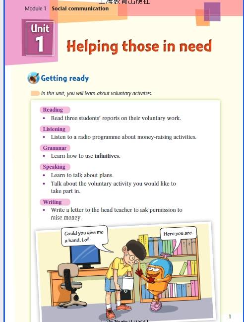 沪教版八年级英语(下册)电子课本可以方便大家随时随地预习或复习课本知识,为此,我们找到了沪教版八年级英语(下册)新教材电子书教材的全部内容,以高清图片的形式呈现给大家,希望能够提高大家的学习效率。