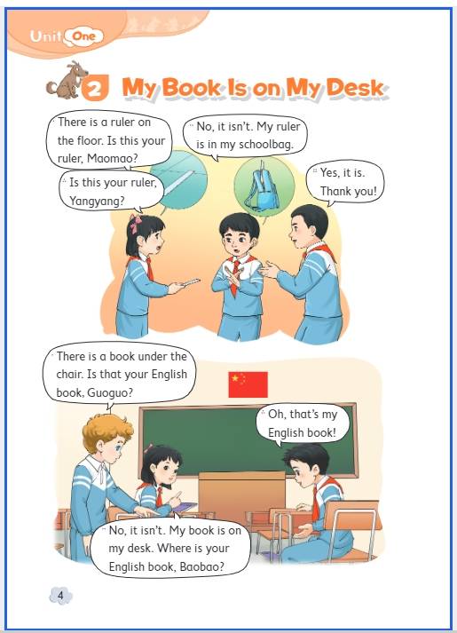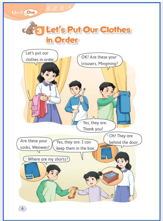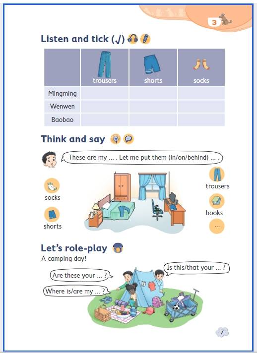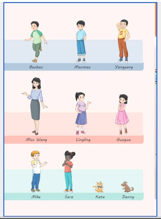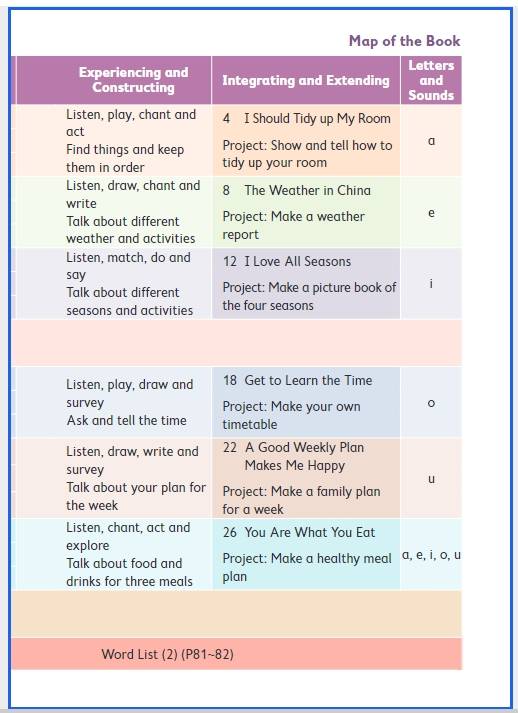 - 课堂指令:Stand up.(起立)/ Sit down.(坐下)/ Open your book.(打开书)/ Close your book.(合上书)/ Listen to me.(听我说),能听懂并执行。