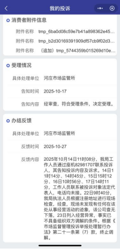 澎湃新闻此前报道,今年10月,杜女士通过微信小程序“绿衣侠”寄出18件旧衣,平台最初预估回收价范围为44.5至200元,但质检后以多数衣物“发黄、污渍、不符合二次销售标准”为由,最终仅结算0.7元。杜女士认为平台存在虚假宣传,遂向市场监管部门投诉。后因公司联系不畅、经营地址不明,杭州钱塘区河庄市场监管所将该公司列为经营异常并终止调解。