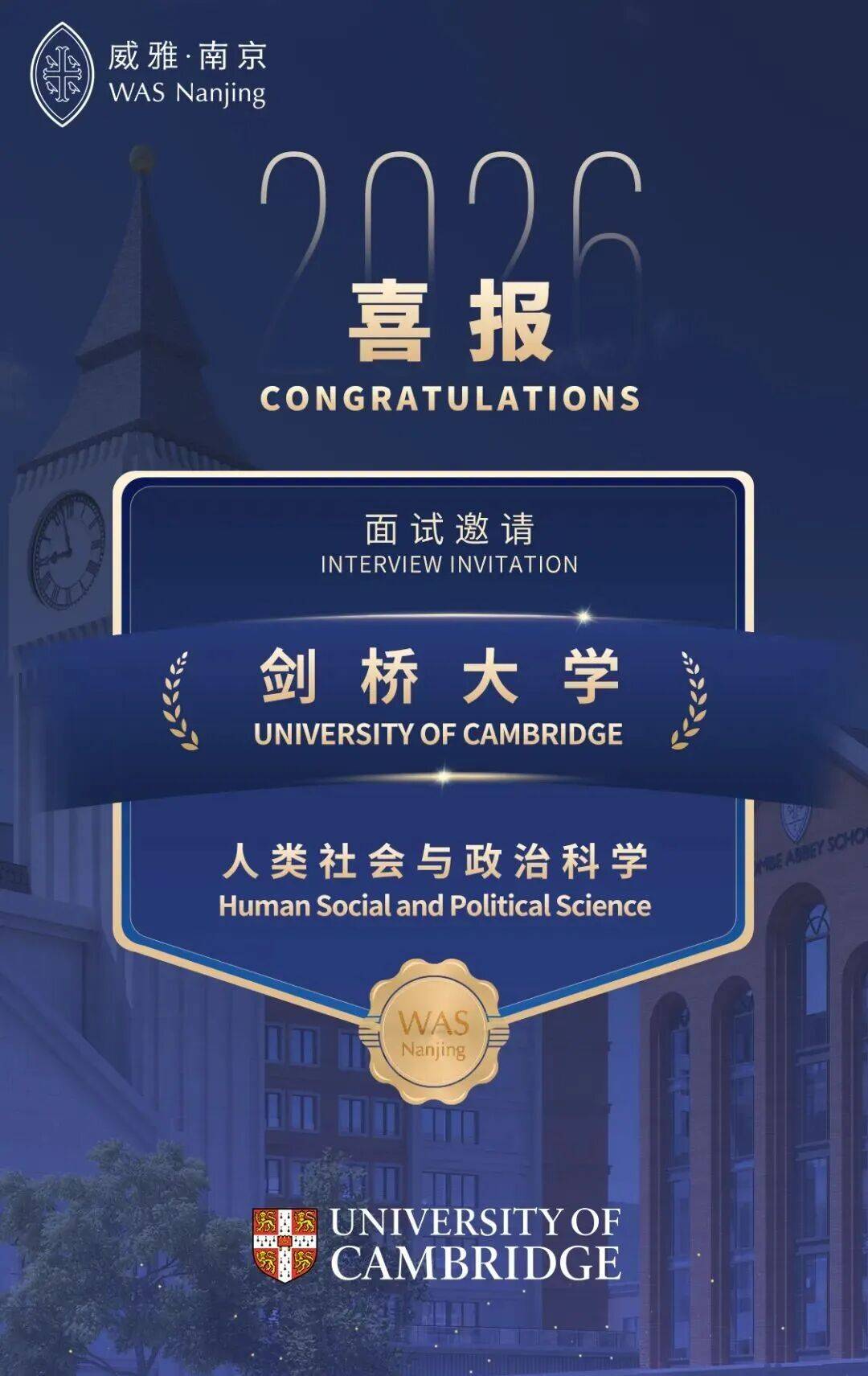 恭喜南京威雅学校的Katerina同学,成功斩获剑桥大学人类社会与政治科学专业面试邀请!