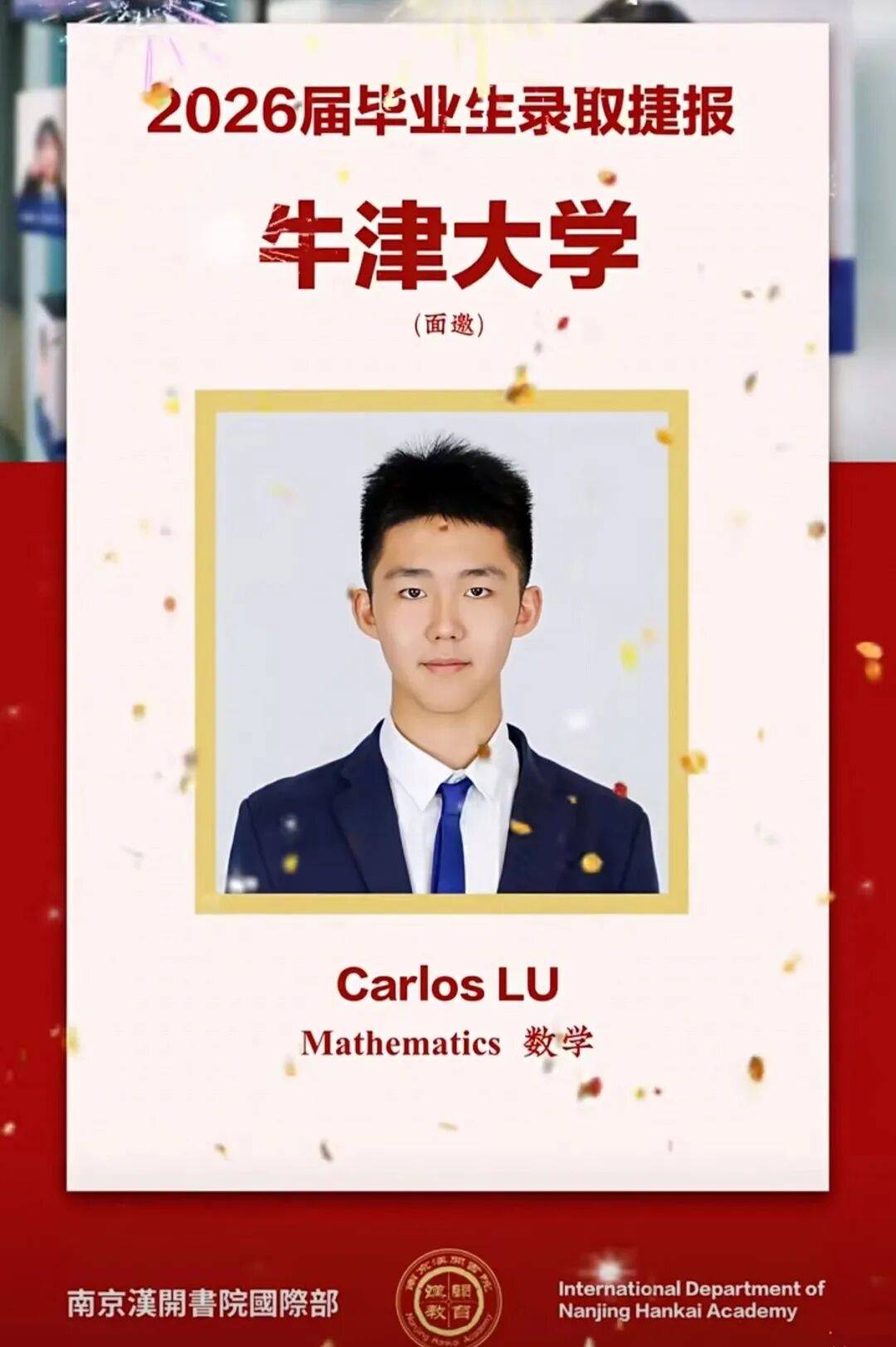 恭喜来自 南京汉开书院国际部的Carlos同学,获得 牛津大学数学专业面试邀请!