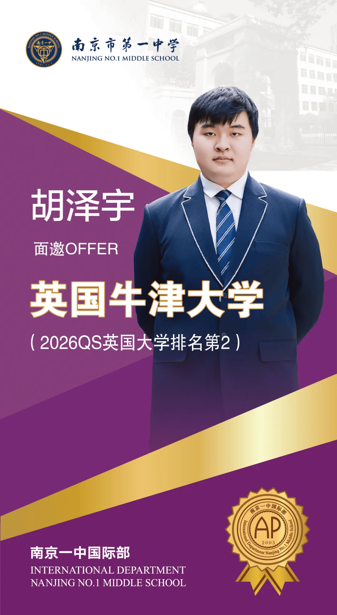 恭喜 南京一中国际部的胡同学,在这个申请季里获得了 牛津大学的面邀!