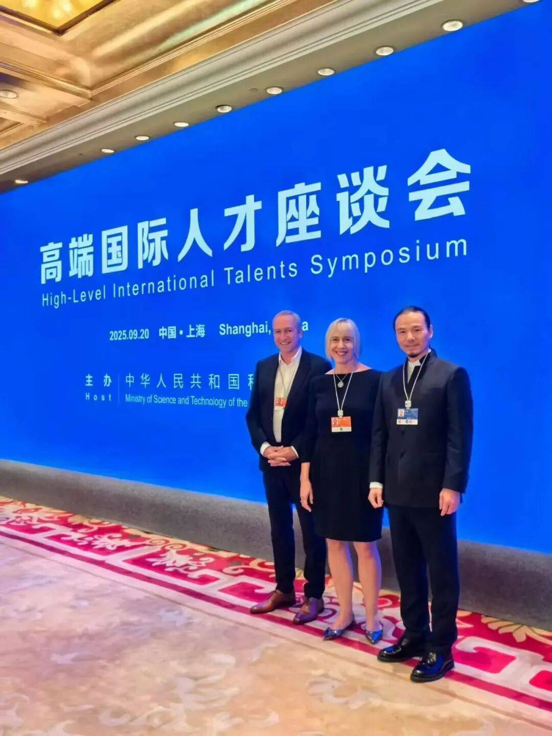 顾磊(右一)受邀参加国家科技部主办的高端国际人才座谈会