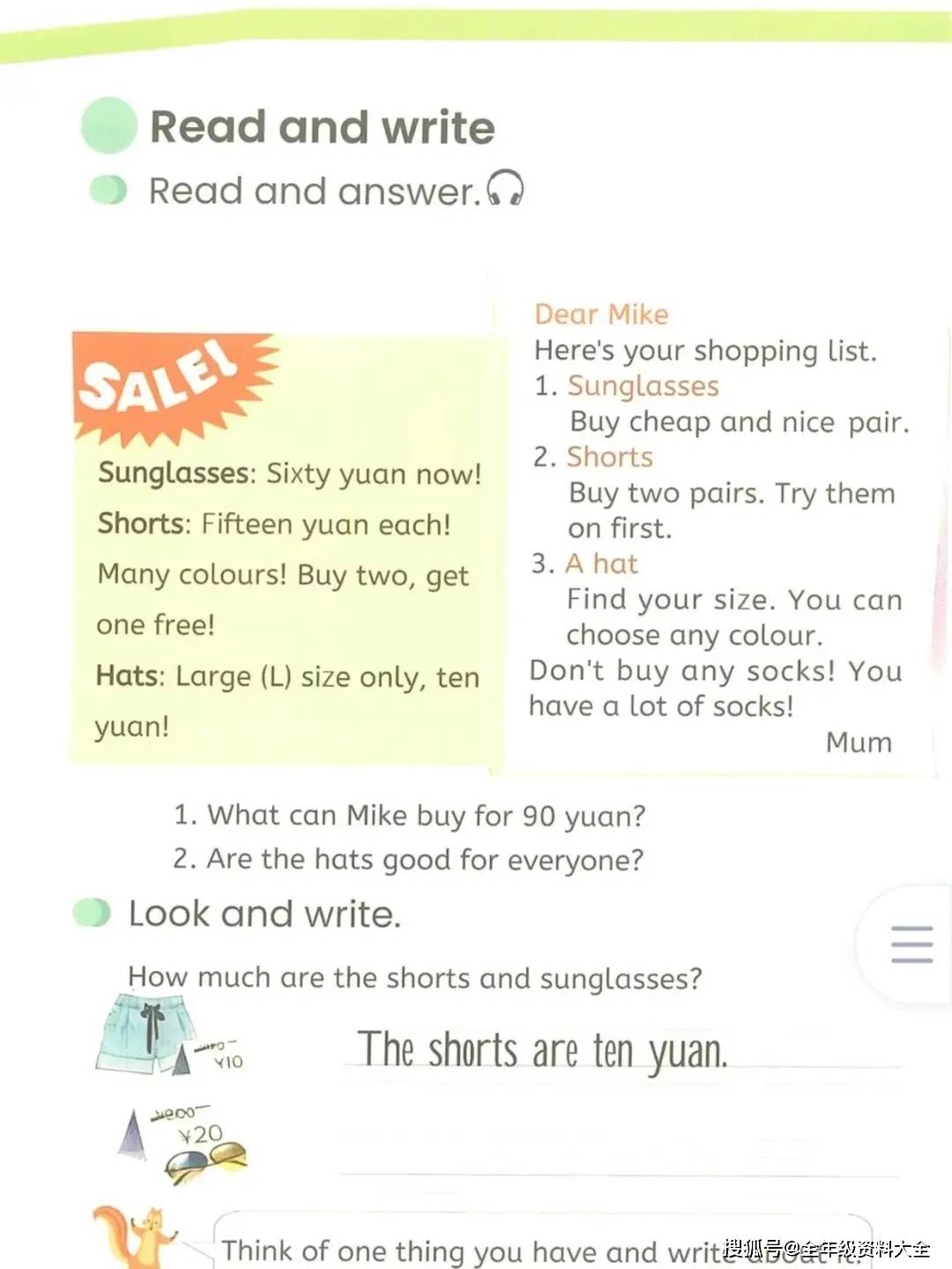 自然拼读板块更是直击四年级孩子的发音痛点,专门攻克er 字母组合发音难点 —— 不仅拆解 “teacher、farmer、sister” 等单词的发音规律,标注 “er 在词尾发 /ə/ 音”,还配套专属发音歌谣,搭配听读训练,孩子跟着歌谣唱 “Teacher, teacher, he’s my teacher. Farmer, farmer, she’s a farmer.”,边唱边练发音,再也不会混淆 er 和其他字母组合的读音;读写任务也设计得超实用,既有 “购物清单阅读” 这类生活化阅读题,让孩子从清单里找 “eggs、bread” 等词汇,训练信息提取能力,又有 “农场活动问答” 写作练习,比如 “—What can you do on the farm? —I can...”,引导孩子把学到的词汇和句型转化为书面表达,实现 “输入→输出” 的完美衔接。