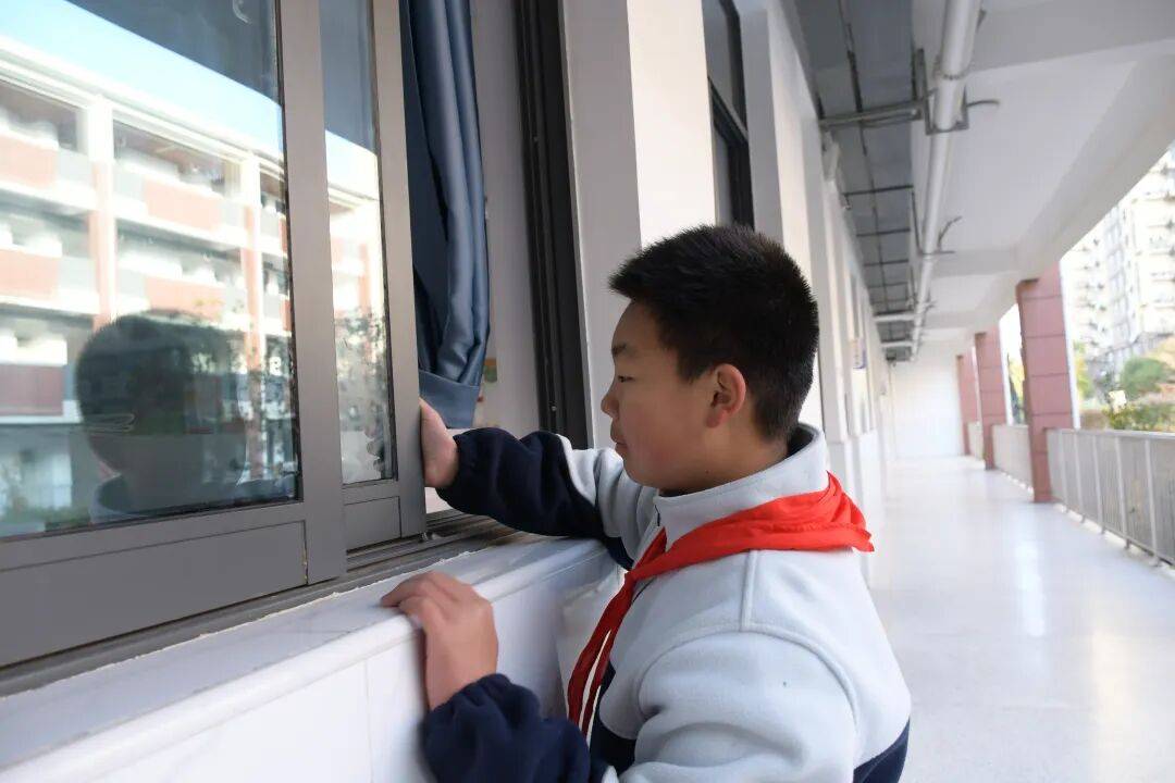 开学以来,学校明确规定各班教室门窗保持开放状态。进入冬季后,上课时,教室内侧朝阳的窗户和前后门常开,保证教室不封闭;下课后,打开背阴的教室外侧窗户及时换气,确保室内空气流通。校级与年级值周人员上下午巡查教室通风情况,让清新空气成为师生的“天然防护屏障”。