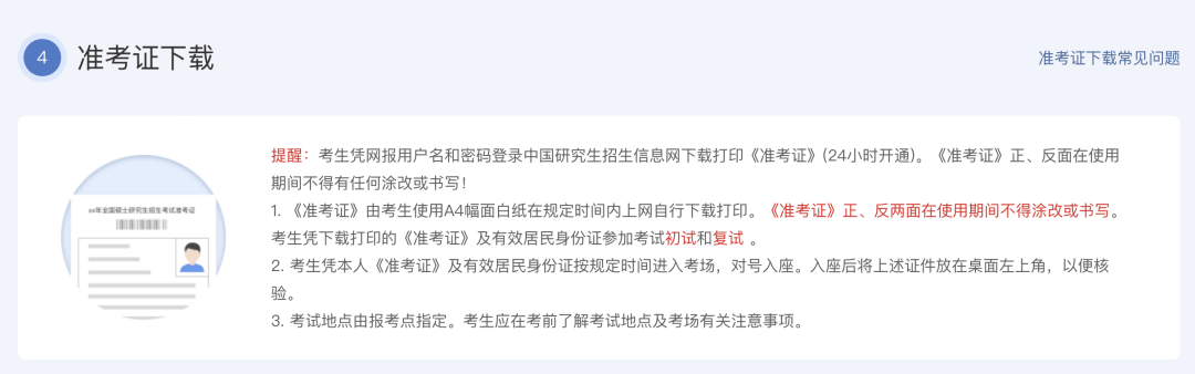 进入准考证下载页面后,你将看到初试时间提醒、考场规则等内容,这个页面上的提示要认真阅读!