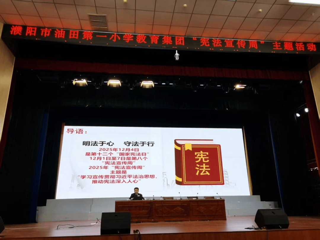 濮阳市油田第一小学教育集团始终高度重视少年儿童的法治教育工作,将法治教育纳入学校德育整体规划。通过常态化开展普法讲座、主题班队会、宪法晨读、法治实践等活动,不断丰富教育形式,提升育人实效。此次“宪法宣传周”普法专题讲座,不仅让同学们了解了宪法的核心知识,更在心中播下了法治的种子。学校将以宪法宣传周为契机,持续开展多样化法治教育活动,营造浓厚的校园法治氛围,助力每一位学子在法治阳光下茁壮成长。