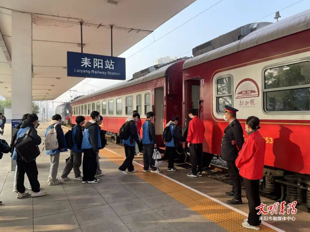 作为深化红色教育与文旅融合的重要举措,“我的韶山行”耒阳研学专列今年共开17列,从12月5日开始至16日结束,延续十二天。期间每天第一列Y712次8:00开,第二列Y842次9:30开,次日下午回到耒阳站。研学专列以“行走的红色课堂”为主题,引导学生从历史实物、革命场景中读懂初心使命。“以前只在课本里了解韶山,现在坐专列去看伟人生活过的地方。这样的学习方式,既有趣又生动,是一次难得的学习体验机会。”耒阳市中等职业技术学校平面设计2502班周辉兴奋地说道。