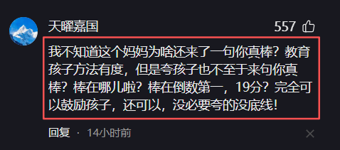 视频迅速引爆网络,评论区里众说纷纭。许多人不解:“不批评可以理解,但夸的点儿在哪儿?”“19分还倒数,这有什么好夸的?”这些质疑背后,是一个普遍的观念:奖励理应属于优异的结果。考满分可以吃大餐,进前三能得新玩具,可凭什么连19分都能换来一份香喷喷的烤肠,外带一份猛夸?