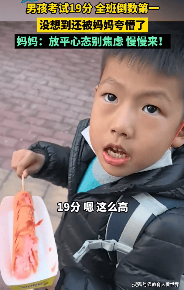 然而,妈妈并没有按照他预想的“剧本”演出。她只是递过去一份冒着热气的烤肠,眼底带着笑意:“19分?这么高啊!”小男孩彻底愣住了,明明是倒数第一,怎么反而……被夸了?
