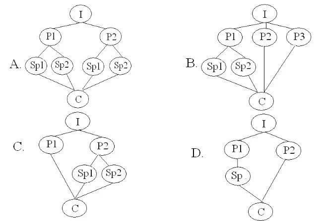 根据原文的结构,先引入大学应是培养自主性和成人身份发展时期的话题,接着提出大学未起到促进转变作用的观点,然后阐述多个次要点,最后进行总结,可知选项C展示了文章的发展思路,所以选C。