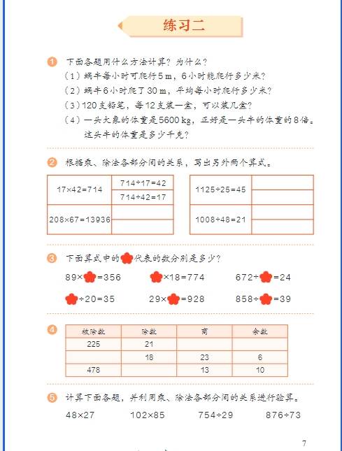 四年级数学期末考试以 **“整数运算、图形认知、量的计量、应用题逻辑”** 为核心,考查基础计算能力、空间想象能力和解决实际问题的能力。以下是分模块的考点梳理、易错点突破和复习建议,适配期末冲刺。一、 核心考点模块梳理(一) 数与代数(占比 50%-60%,基础得分点)大数的认识(上册重点)核心内容:认识亿以内 / 亿以上的数,掌握数位顺序表(个位、十位…… 亿位);数的读法(分级读,中间 0 读一个,末尾 0 不读)、写法(从高位写起,缺位补 0);数的大小比较(位数多的数大,位数相同比最高位);改写与求近似数(用 “四舍五入” 法,改写用 “=”,近似数用 “≈”)。易错点:读大数时漏读分级后的 0;求近似数时混淆 “四舍” 和 “五入” 的边界(如省略万位后面的尾数,看千位)。例题:读出 30050080 → 读作三千零五万零八十;把 456780 改写成用 “万” 作单位的近似数 → 46 万。三位数乘两位数 & 除数是两位数的除法(上下册核心计算)核心内容:笔算乘法:先用两位数个位上的数去乘三位数,得数末位对齐个位;再用十位上的数去乘,得数末位对齐十位;最后把两次积相加(如 \(123×45 = 5535\))。笔算除法:从被除数高位除起,先看前两位,不够除看前三位;除到哪一位商就写在哪一位上面;余数要比除数小(如 \(720÷18 = 40\))。估算:乘法估算(\(298×32≈300×30=9000\));除法估算(\(632÷90≈7\)),用于检验计算结果是否合理。易错点:乘法计算时漏加进位;除法计算时商的位置写错(如除到十位,商写在个位);余数大于除数。运算定律与简便计算核心内容:加法交换律(\(a+b=b+a\))、结合律(\((a+b)+c=a+(b+c)\));乘法交换律(\(a×b=b×a\))、结合律(\((a×b)×c=a×(b×c)\))、分配律(\((a+b)×c=a×c+b×c\));连减(\(a-b-c=a-(b+c)\))、连除(\(a÷b÷c=a÷(b×c)\))的简便运算。易错点:乘法分配律的逆用(如 \(35×68+65×68 = (35+65)×68\))容易混淆;连减简便运算时忘记变号。小数的初步认识(下册重点)核心内容:小数的读写(如 0.35 读作零点三五);小数的意义(一位小数表示十分之几,两位小数表示百分之几);小数的大小比较(先比整数部分,再比十分位、百分位);简单的小数加减法(小数点对齐,相同数位相加减)。易错点:小数加减法时没对齐小数点;误以为小数位数越多,数越大(如 \(0.1 > 0.099\))。(二) 图形与几何(占比 20%-25%,空间想象考点)角的度量 & 平行与垂直(上册)核心内容:认识直线、射线、线段(直线无端点,射线一个端点,线段两个端点);角的分类(锐角 <90°、直角 = 90°、钝角> 90° 且 < 180°、平角 = 180°、周角 = 360°);用量角器量角、画角;平行(同一平面内永不相交的两条直线)与垂直(两条直线夹角 90°)的概念;画垂线和平行线(如过直线外一点画已知直线的垂线)。易错点:量角时看错内外圈刻度;混淆 “射线” 和 “线段” 的特征;画垂线时忘记标直角符号。平行四边形和梯形(上册)核心内容:平行四边形(两组对边分别平行且相等)、梯形(只有一组对边平行)的特征;长方形和正方形是特殊的平行四边形;认识平行四边形的高和底,能画出指定底边上的高。易错点:认为 “有一组对边平行的四边形是梯形”(漏了 “只有”);画高时没垂直于底边。三角形(下册,部分版本)核心内容:三角形的特性(稳定性);三角形三边关系(任意两边之和大于第三边);三角形的分类(按角分:锐角、直角、钝角三角形;按边分:等腰、等边三角形);三角形内角和是 180°。易错点:判断三条线段能否围成三角形时,只算两组边的和;忽略等边三角形是特殊的等腰三角形。(三) 量的计量与统计(占比 10%-15%,基础应用)单位换算核心内容:长度单位(千米、米、分米、厘米、毫米,进率:1 千米 = 1000 米,1 米 = 10 分米);面积单位(平方米、平方分米、平方厘米,进率:1 平方米 = 100 平方分米);重量单位(吨、千克、克,进率:1 吨 = 1000 千克);时间单位(时、分、秒,进率:1 时 = 60 分)。易错点:单位换算时进率记错(如面积单位进率是 100,长度是 10);换算时没注意 “高级单位→低级单位乘进率,低级单位→高级单位除以进率”。条形统计图核心内容:认识单式 / 复式条形统计图;能根据统计图读取数据、分析问题(如 “哪个类别数量最多”);能补充绘制统计图。易错点:读统计图时看错横轴 / 纵轴的单位;绘制时直条的高度不准确。(四) 应用题(占比 20%-25%,拉分关键)归一归总问题归一:先求单一量(如 “3 台机器 5 小时生产 150 个零件,1 台机器 1 小时生产多少个?”)。归总:先求总量(如 “小明每天看 10 页书,8 天看完,若每天看 16 页,几天看完?”)。行程问题核心公式:路程 = 速度 × 时间,速度 = 路程 ÷ 时间,时间 = 路程 ÷ 速度;相遇问题(总路程 = 速度和 × 相遇时间)。易错点:单位不统一(如速度是千米 / 时,时间是分钟,没换算)。面积 / 周长问题长方形周长 =(长 + 宽)×2,面积 = 长 × 宽;正方形周长 = 边长 ×4,面积 = 边长 × 边长;平行四边形面积 = 底 × 高(部分版本)。易错点:混淆周长和面积的概念(如求 “铺地板需要多少材料” 是求面积,求 “围栅栏多长” 是求周长);单位混用(周长用长度单位,面积用面积单位)。二、 期末易错点大排查(避坑提分)易错类型典型错误正确做法计算类\(125×8÷125×8 = 1\)按从左到右顺序算:\(125×8÷125×8 = 64\)概念类认为 “平角是一条直线”平角是由一条射线绕端点旋转 180° 形成的,有顶点和两条边单位类\(5平方米=50平方分米\)牢记面积进率 100:\(5平方米=500平方分米\)应用题
