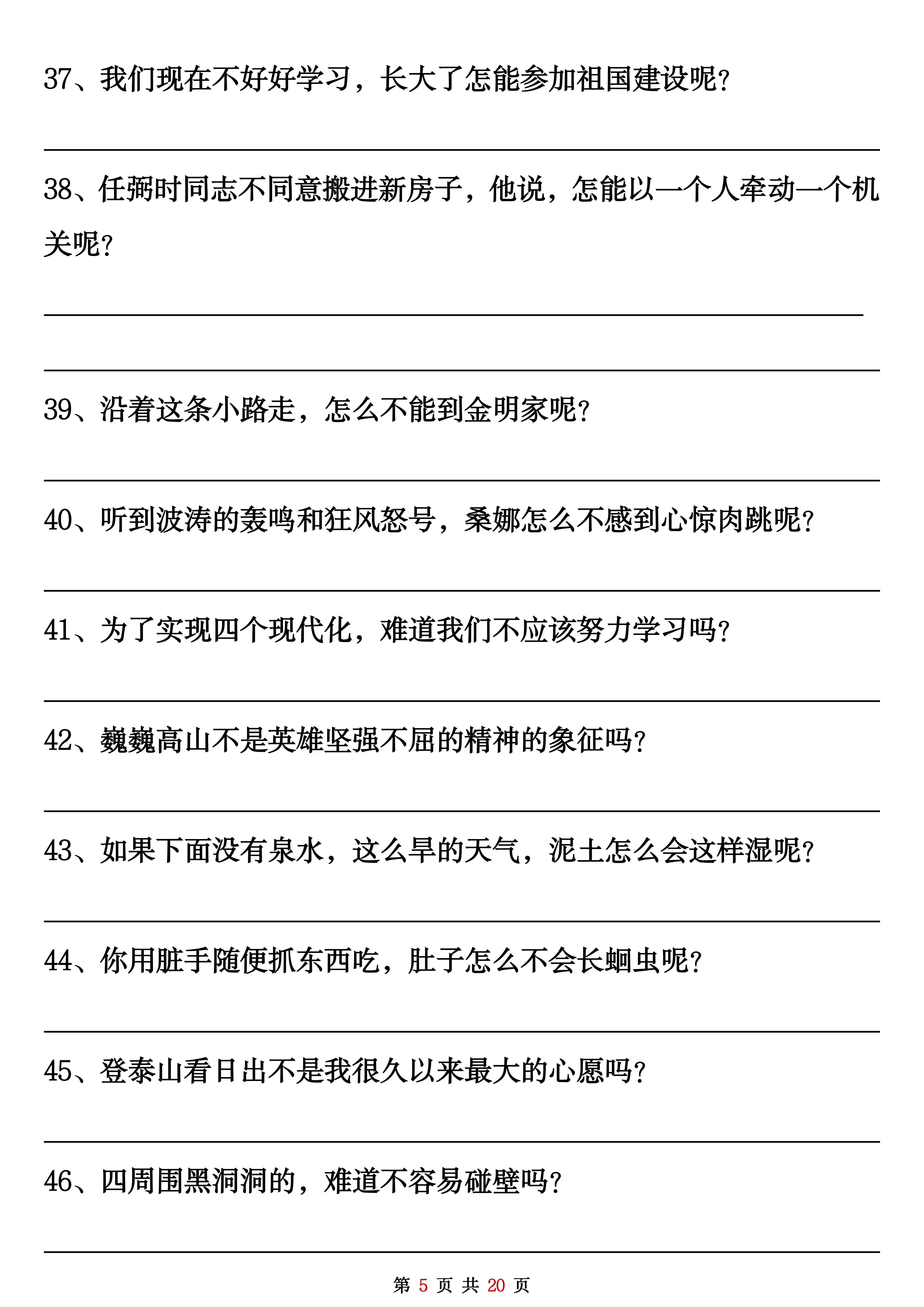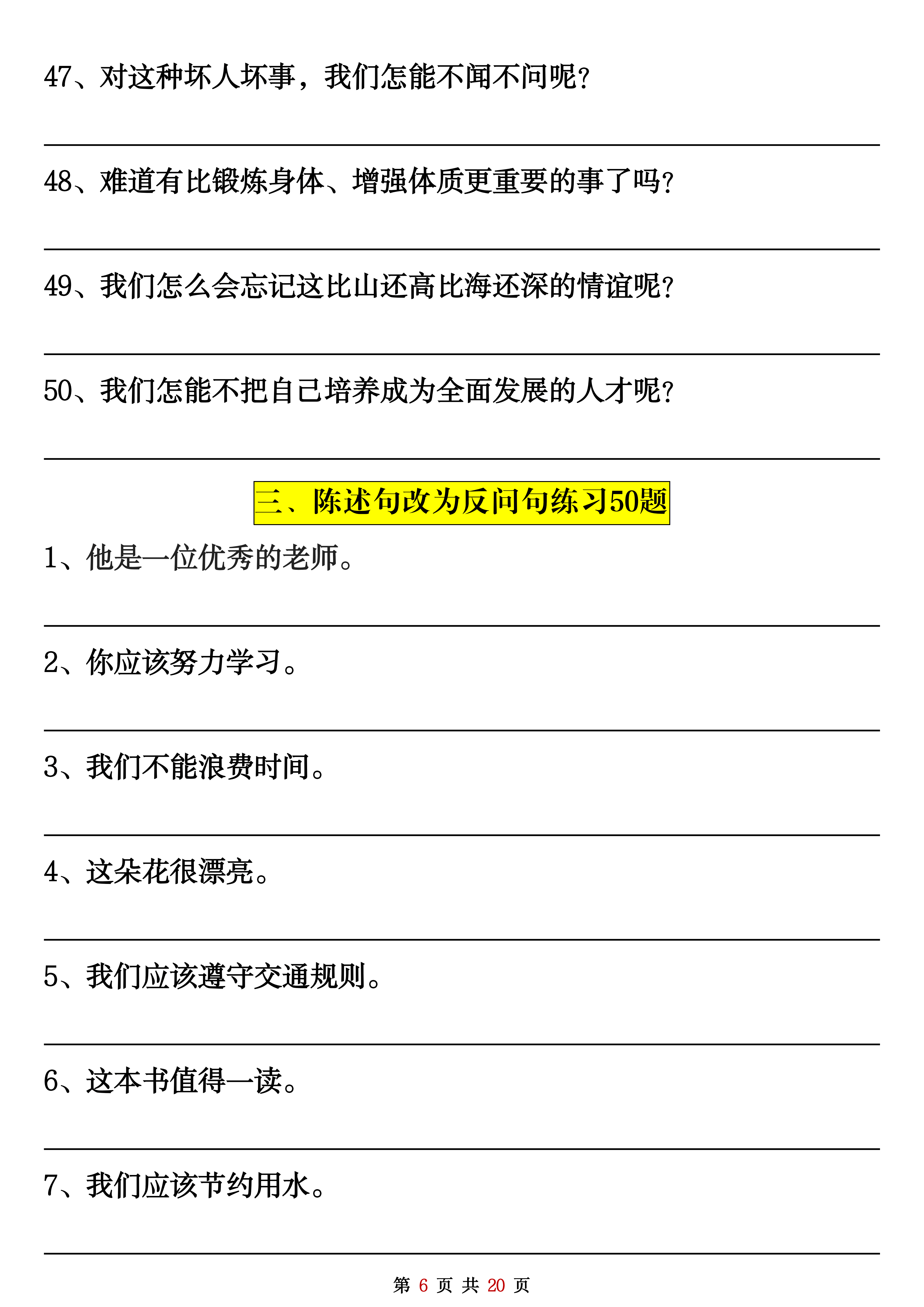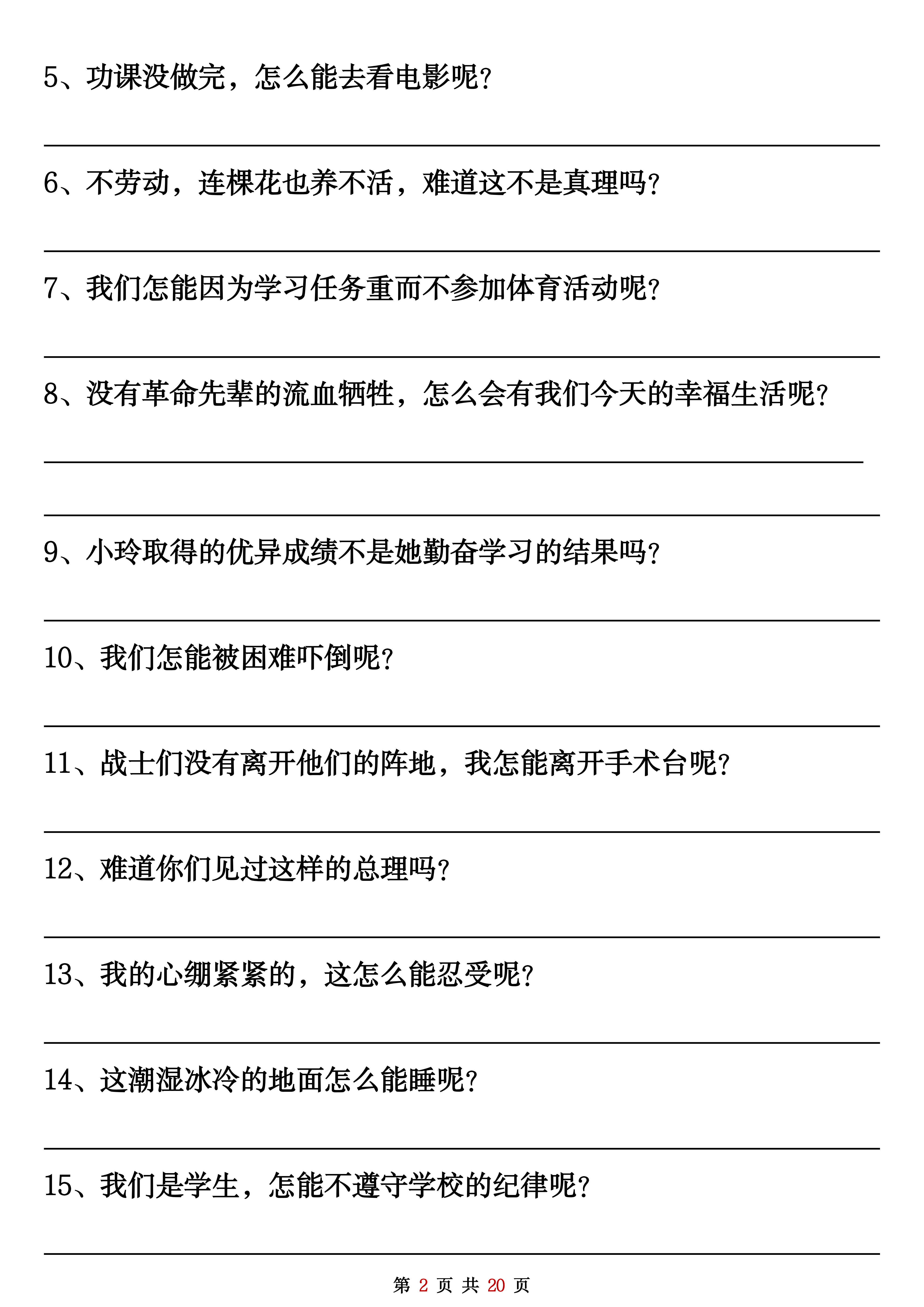 二年级上册语文反问句陈述句转换专项练习100题(含答案)(电子版可打印)