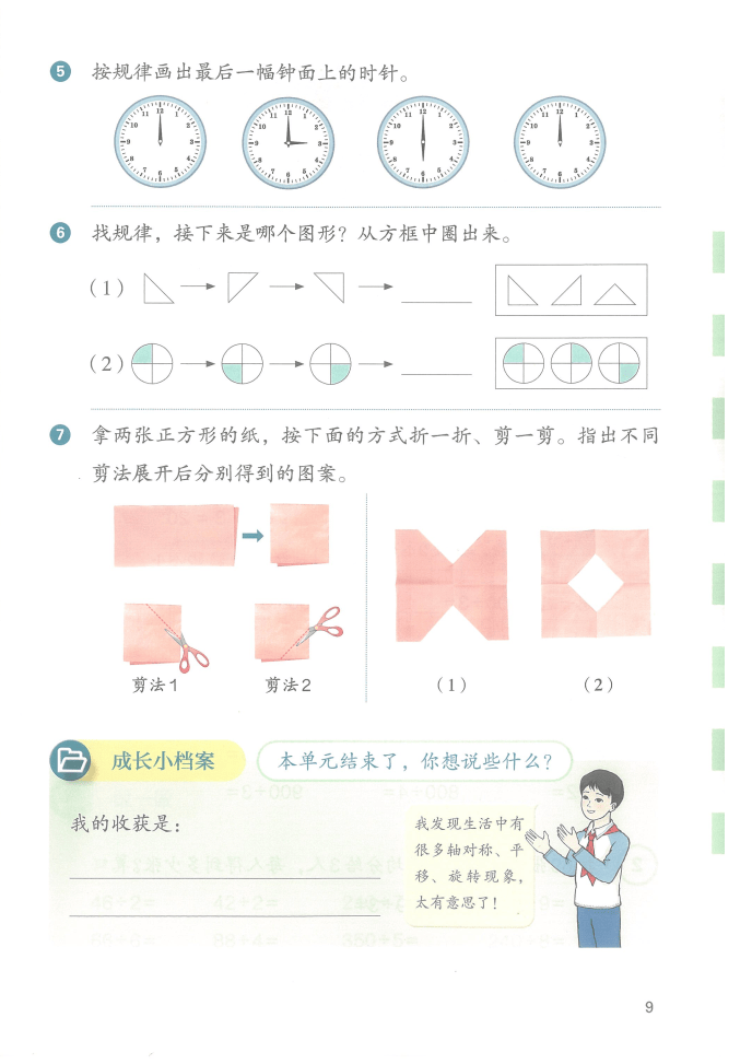 值得家长重点点赞的是,新教材不仅干货满满,更注重知识衔接与核心素养的科学培养。教材遵循 “由浅入深、螺旋上升” 的编排逻辑,除数是一位数的除法衔接二年级表内除法,两位数乘两位数从口算、估算到竖式计算层层递进,为四年级混合运算铺路;面积单元通过 “长方形面积公式推导”“单位换算”,强化空间观念与运算能力,还悄悄渗透 “转化” 思想。图形的运动单元通过观察电梯平移、风车旋转、蝴蝶轴对称等生活现象,搭配折纸、剪纸等动手操作,培养初步空间想象能力;年日月单元则通过探究闰年规律、记录生日周期,提升数据意识与推理能力。教材优化了习题设计,分为 “复习巩固”“综合运用”“拓展提升” 三个层次,既落实 “双减” 要求,又能分层夯实基础。无论是用除法解决实际问题,还是用面积公式规划种植区域,都能让孩子在 “做中学、用中悟”,既掌握扎实知识,又培养应用意识与逻辑思维,为高段数学学习筑牢根基~
