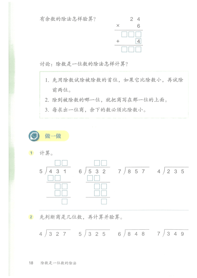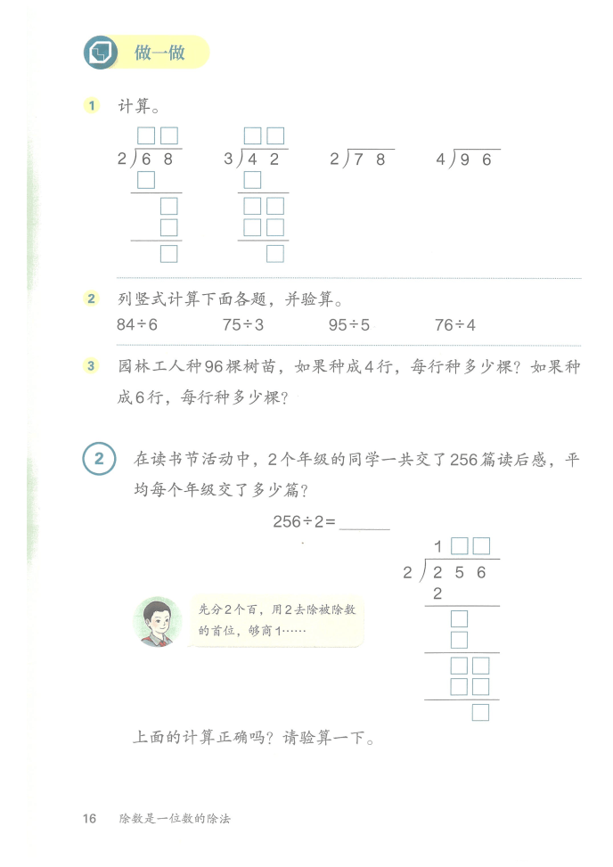 2026 春人教版三年级数学下册新教材紧扣新课标,以除数是一位数的除法、两位数乘两位数、面积、年日月为核心,通过生活化情境与实操探究设计,衔接低高段知识,培养学生运算能力、空间观念与综合应用素养。