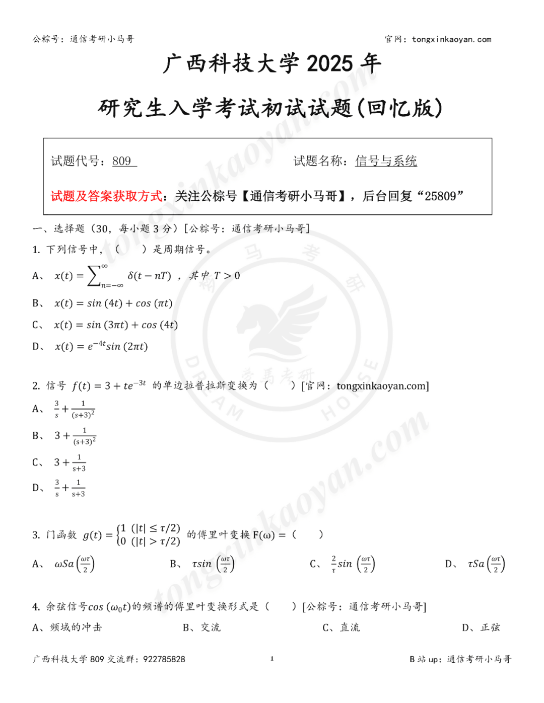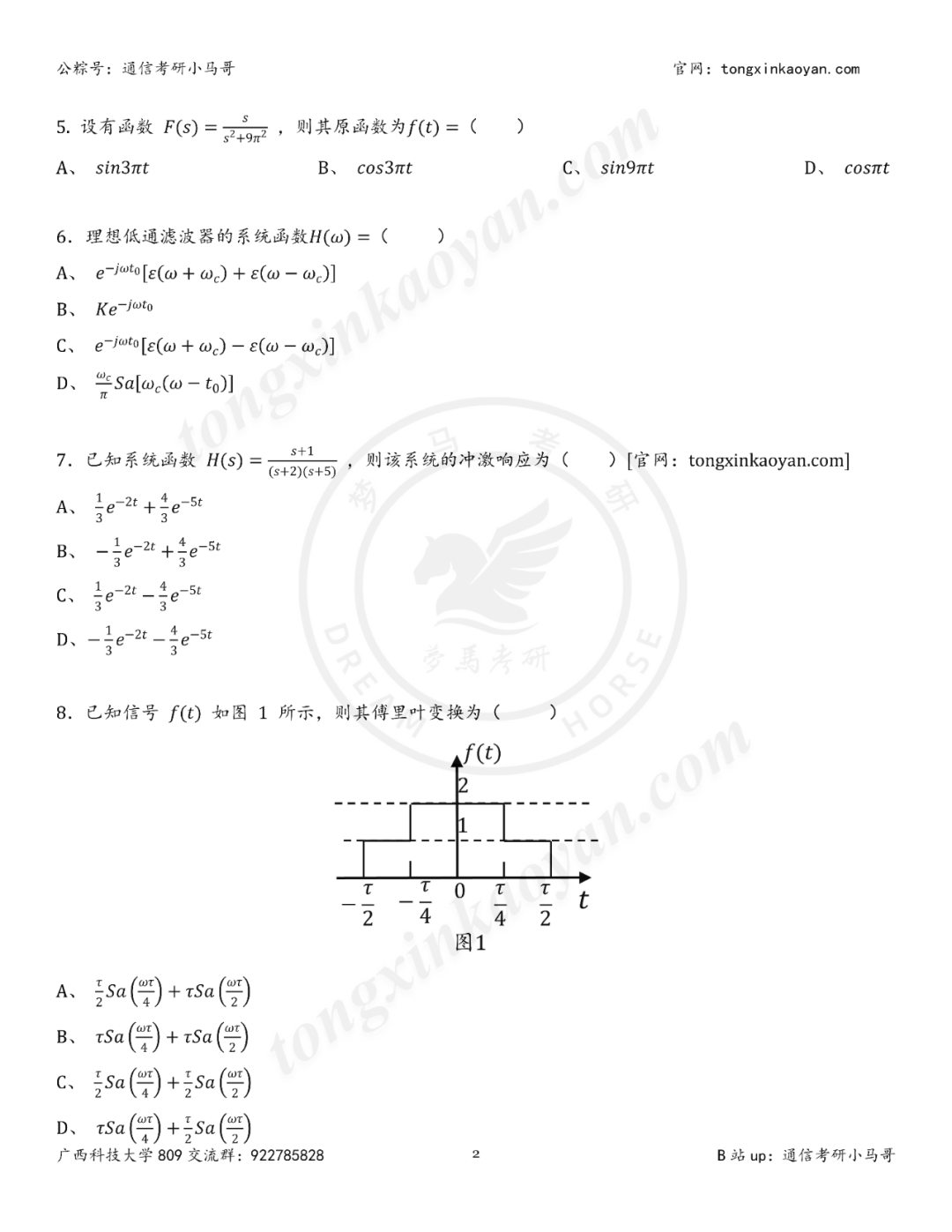 今天分享的是广西科技大学809信号与系统部分试题及其解析。