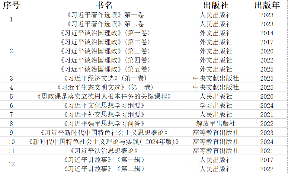 近日,教育部高校思政课教学指导委员会推出《高校思政课教师必读书目清单(2025年版)》。图书馆将分6期推荐该书单。本期推出该书单第一部分,即“习近平新时代中国特色社会主义思想概论”“新时代中国特色社会主义理论与实践”主题图书,共18册。图书馆选取其中的10册馆藏书目进行展示,方便广大师生借阅,以资教学参考与学术滋养。