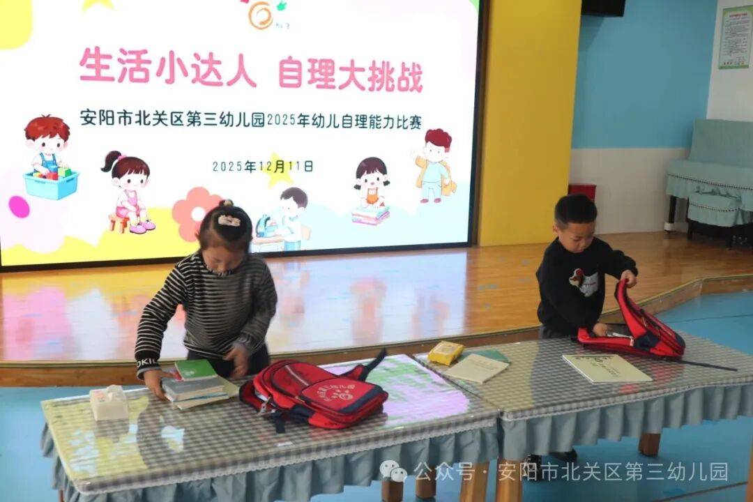 为深入贯彻落实《3-6岁儿童学习与发展指南》精神,践行“生活即教育”的教育理念,进一步培养幼儿良好的生活习惯和自理能力,北关区第三幼儿园于12月10日至11日成功举办了“生活小达人,自理大挑战”幼儿自理能力比赛。孩子们用一场精彩纷呈的“自理能力挑战赛”,为自己的成长留下闪亮印记。