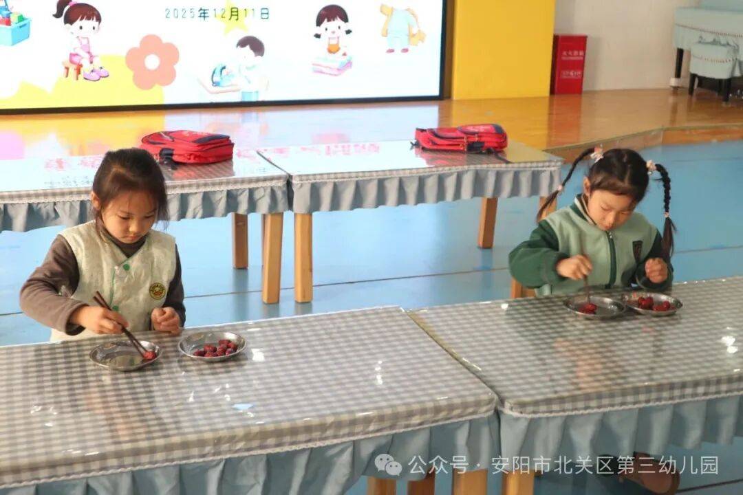 夹红枣:使用儿童筷子稳定夹取,锻炼手部精细动作