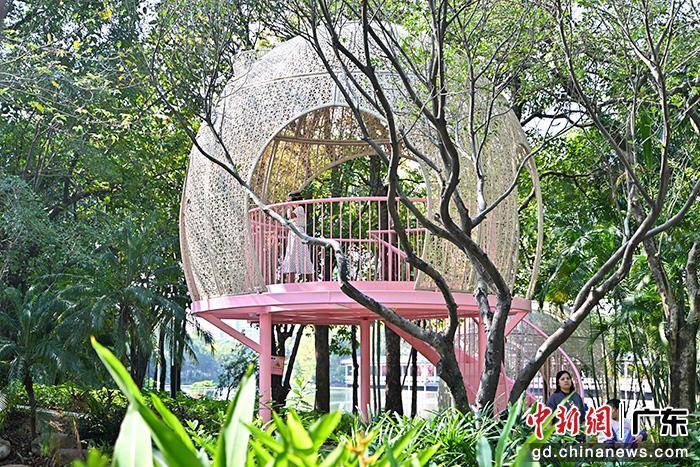 图为公园搭建的特色装置,吸引了市民体验。记者 陈骥旻 摄