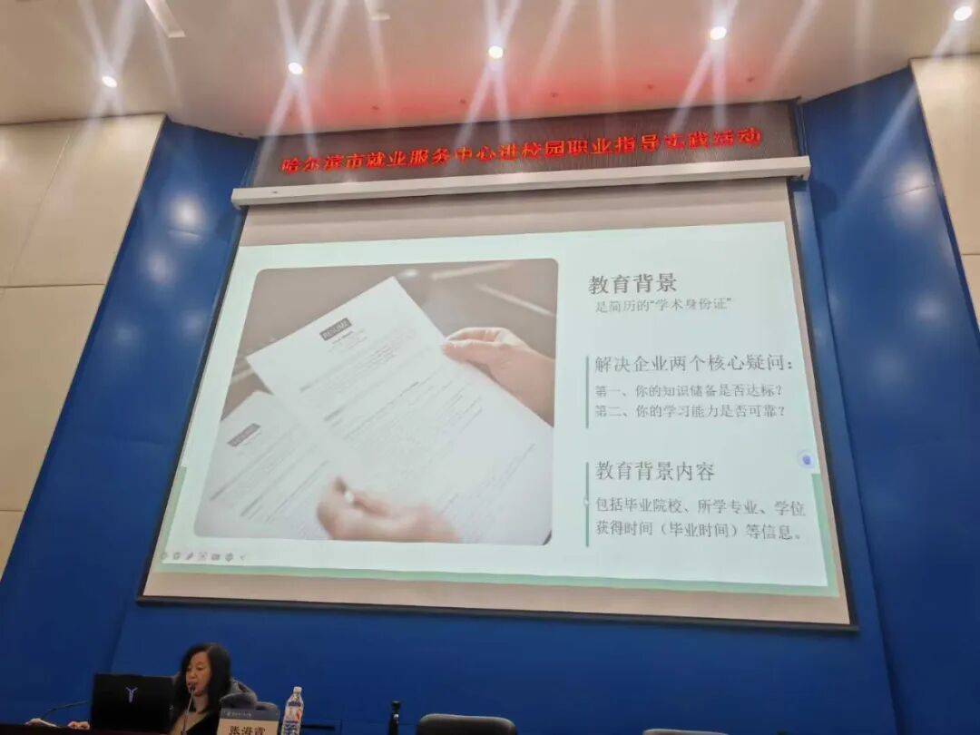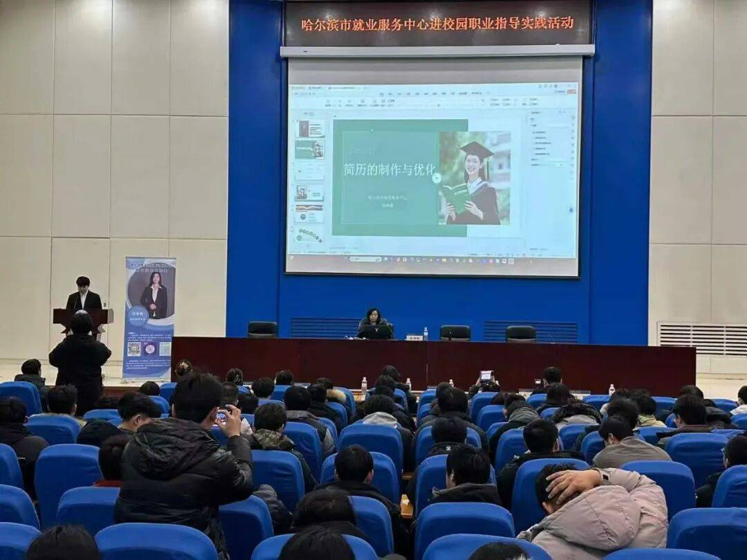 为切实提升高校毕业生求职竞争力,助力毕业生顺利开启职业征程,12月11日下午,哈尔滨市就业服务中心职业指导工作室走进黑龙江工程学院,开展职业指导实践课系列活动。首讲聚焦“简历制作与优化”核心主题,吸引近400名临近毕业年度的学生参与,现场学习氛围浓厚。