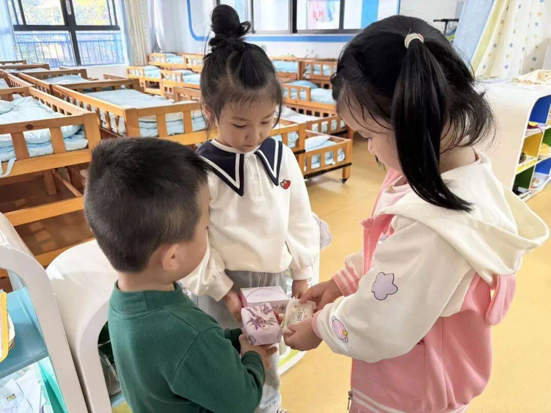 闻一闻,摸一摸,在探索中,孩子对肥皂里面也充满了好奇,都想看看里面是什么样子的。