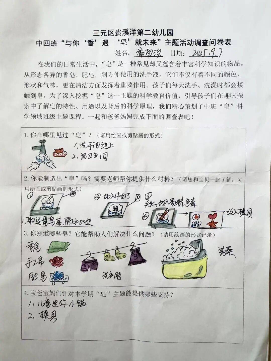 《3-6岁儿童学习与发展指南》指出:"儿童发展是有机整体,应注重领域间、目标间的相互渗透整合,促进幼儿身心全面协调发展。"通过观察、触摸、使用香皂的生活化实践,幼儿既能建立正确卫生习惯,培养生活自理能力;又能在动手操作中激发科学探索兴趣,提升观察表达能力。基于真实生活情境的探索活动,既契合中班幼儿"好动手、爱探究"的年龄特征,又充分践行《指南》《纲要》中的"做中学、玩中学"的教育理念,为幼儿全面发展提供了生动而有效的学习契机。