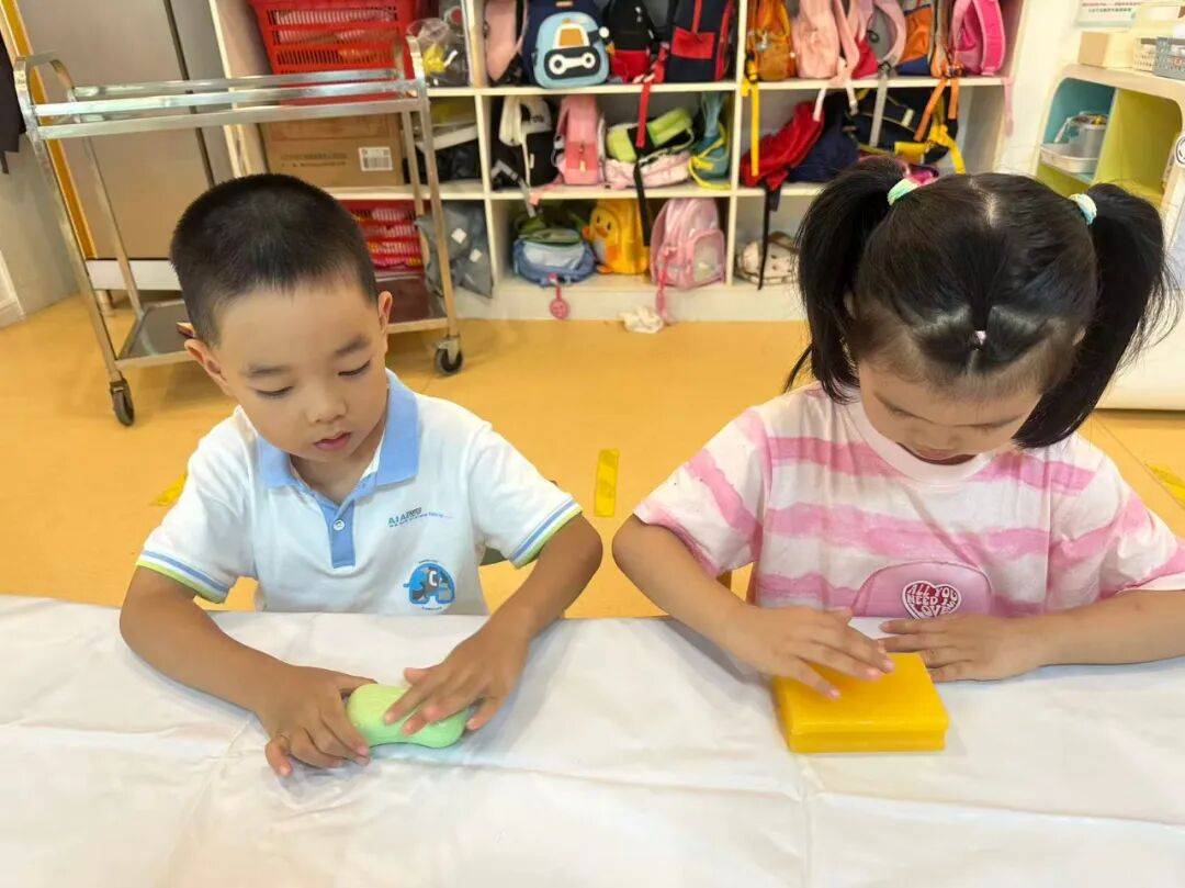 面对这个问题,孩子们突发奇想,有的说用袋子装起来,有的提议将两块湿的肥皂靠在一起粘起来,还有的认为沾水捏就行。