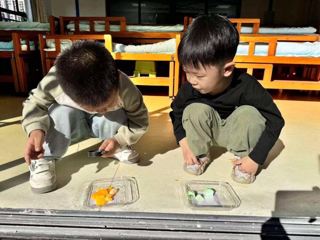 孩子们发现:太阳的温度完全不够,过度的暴晒,容易让皂出油,并不能使肥皂融化,也不能再次组合。
