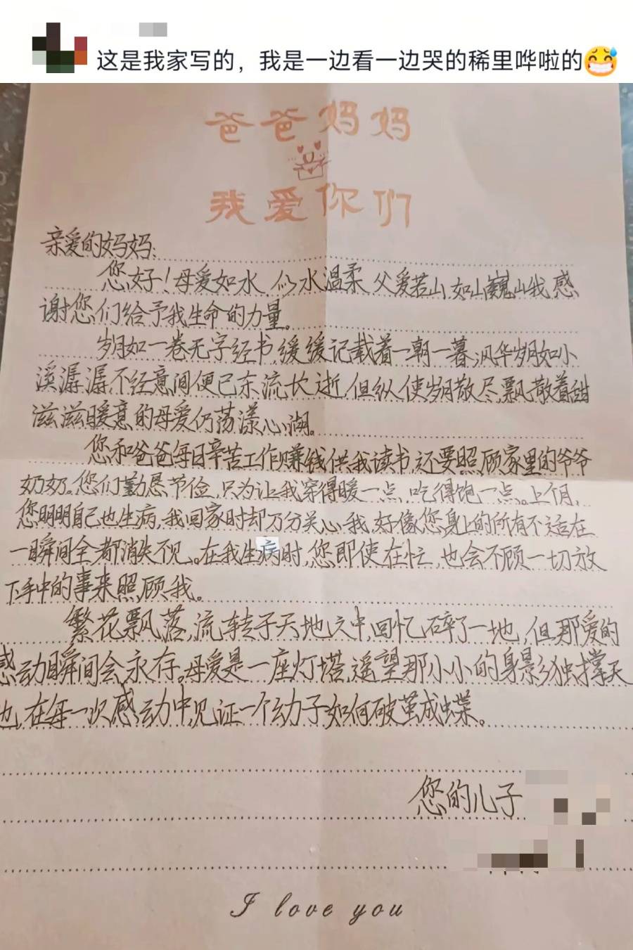 “爸、妈,没考好的那次,我比你们更难过”