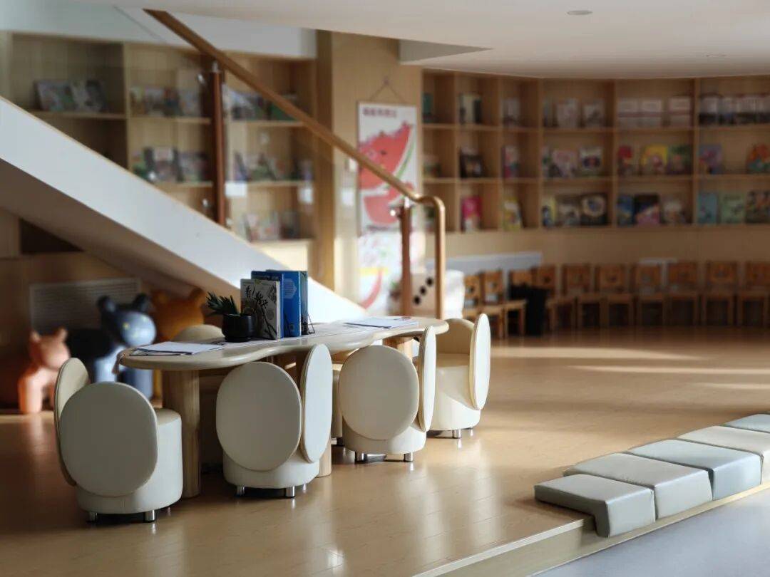在环境创设方面,伊金霍洛旗第四幼儿园注重多维阅读空间的打造。一楼设有开放式读书平台,班级设置个性化阅读区,楼梯转角结合四季变化布置主题阅读角,户外还建有自然野趣的阅读木屋,实现室内外阅读环境的有机融合。目前,园内共有幼儿绘本7100余册,涵盖情感、科普、行为习惯等多类主题,并保持每年更新;教师专业书籍与期刊达1500余册。