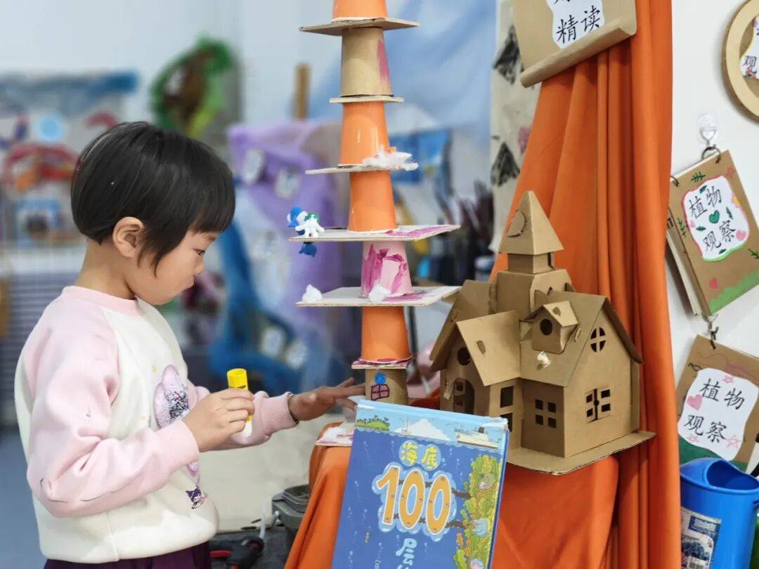 伊金霍洛旗第四幼儿园着力让阅读融入幼儿的日常生活与游戏。在绘本角阅读区,孩子们自由翻阅、聆听故事;在角色扮演区,幼儿化身绘本角色,重演或改编情节;艺术创想坊里,他们通过手工制作重现故事场景;在建构区则用积木搭建故事中的场景,促进空间思维的提升。这种以绘本为中心的游戏化拓展,让阅读成为可体验、可互动、可创造的过程,使故事内化为幼儿的成长经验。