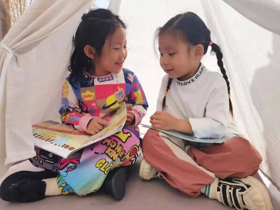 伊金霍洛旗第四幼儿园还通过举办活动持续激发阅读热情。每年四月的“读书节”已成为传统活动,涵盖图书漂流、故事创编、角色扮演等丰富内容。此外,“绘本跳蚤市场”让孩子交换与售卖图书,提升社会交往能力;“爸爸故事会”邀请父亲参与讲述,增加亲子互动;“幼儿童话故事会”锻炼幼儿的表达能力;“帐篷读书会”则在户外营造轻松共读的氛围。教师通过定期的“师者书香”读书分享会,发挥阅读引领作用。家园协同方面,通“书香家庭”评选活动,鼓励家庭建立阅读角,将阅读延伸至家庭日常。