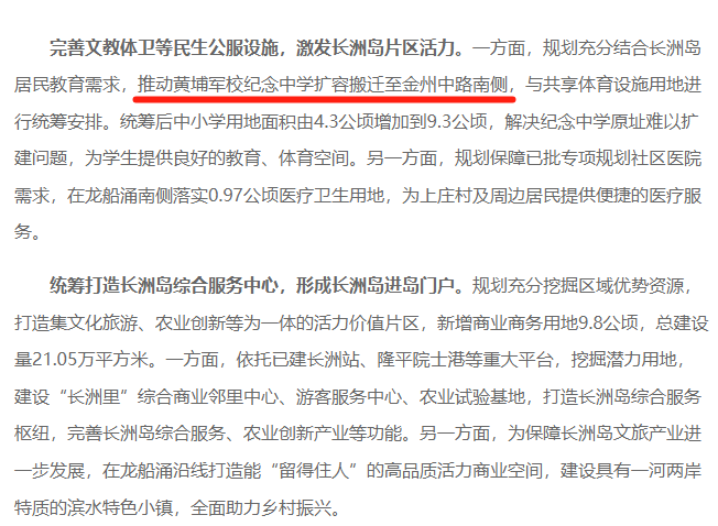 ?2024年12月2日,黄埔区规划和自然资源局网站发布文章《规划获批!长洲岛这个区域将迎来蝶变》,文章提及了黄埔军校纪念中学扩容搬迁的相关信息。