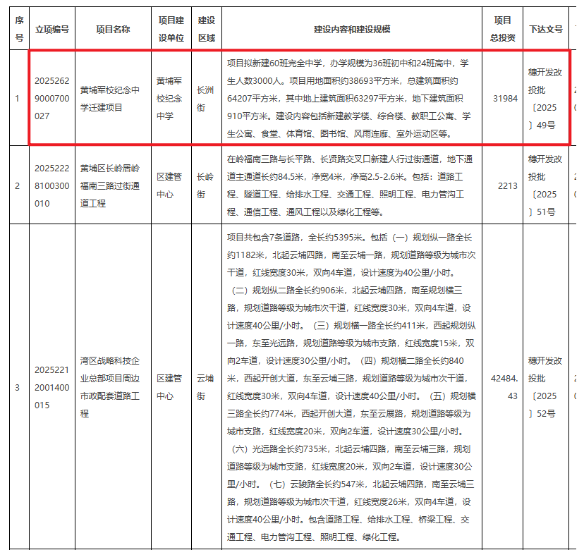 从公开信息来看,黄埔军校纪念中学迁建项目正式获批。