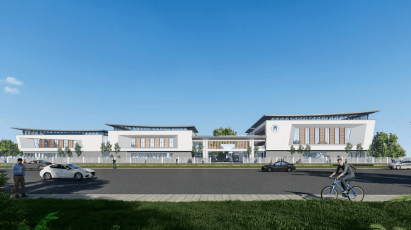 项目拟新建60班完全中学,办学规模为36班初中和24班高中,学生人数3000人。项目用地面积约38693平方米,总建筑面积约64207平方米,其中地上建筑面积63297平方米,地下建筑面积910平方米。建设内容包括新建教学楼、综合楼、教职工公寓、学生公寓、食堂、体育馆、图书馆、风雨连廊、室外运动区等。