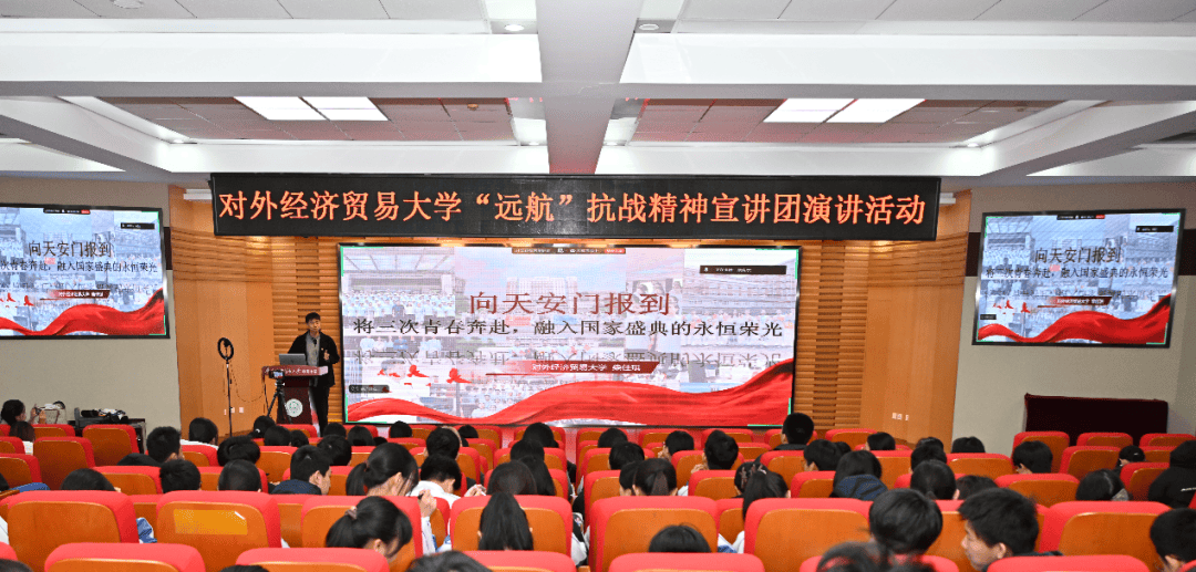 为充分利用好中国人民抗日战争暨世界反法西斯战争胜利80周年纪念活动激发的强大正能量,持续用好纪念活动的生动爱国主义教材,按照北京市委教育工委的要求,在校党委的领导下,校团委以参加重大活动的师生为主体,组建“远航”抗战精神宣讲团,运用故事化宣讲、沉浸式体验等方式,在校内外讲述伟大抗战精神,讲述贸大青年与祖国同心共行的生动事迹,推进大中小学思政课一体化改革创新,引导激励青年学生弘扬革命传统、传承红色基因。
