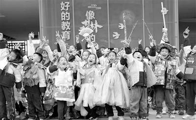 ②江西省南昌师范附属实验小学教育集团的师生在表演校史剧。
