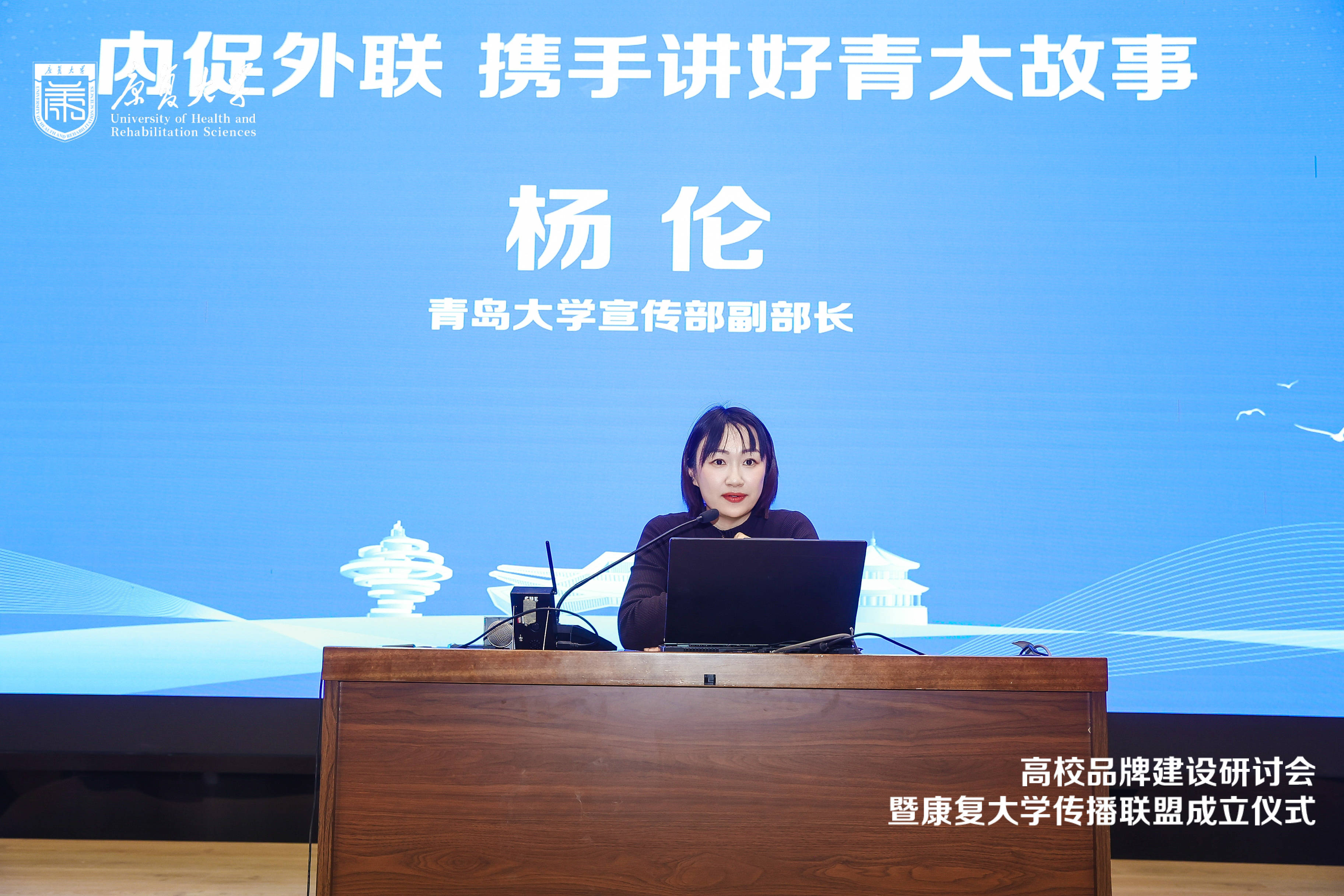 青岛大学党委宣传部副部长杨伦结合本校实践,以“内促外联,携手讲好青大故事”为题作了经验分享。她重点介绍了融媒体中心的运作机制与多平台协同策略,强调以优质内容连接校园与社会,为高校在新媒体环境下创新叙事、塑造品牌提供了切实可行的路径参考。