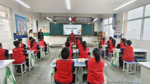 展示活动利用早读时间进行,展示内容分“经典诵读+课文片段朗诵”两部分。活动伊始,各班语文教师提前从本学期课文中抽取题目,既保证了内容的规范性,也富有趣味。展演现场有的班级以“领诵+齐诵”的形式铺展意境,领诵同学声情并茂,全班合声整齐响亮;有的班级搭配了轻柔的古典音乐,稚嫩的嗓音裹着旋律,让诵读篇目多了几分悠远韵味。孩子们始终精神饱满、仪表大方,清亮的声音里满是对文字的喜爱。不少老师感慨:“孩子们不仅把句子读顺了,更读出了情绪——这就是经典的力量。”