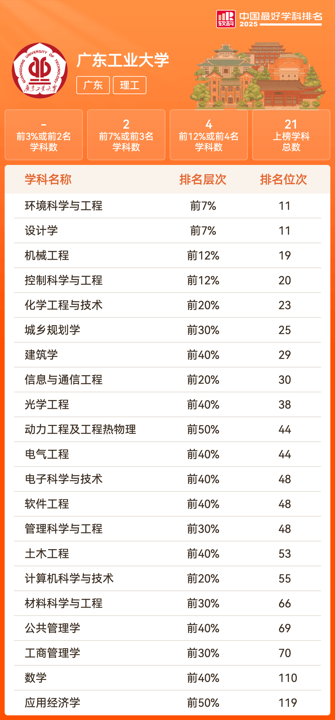 软科发布的《2025软科中国大学专业排名》中,广工上榜专业数86。