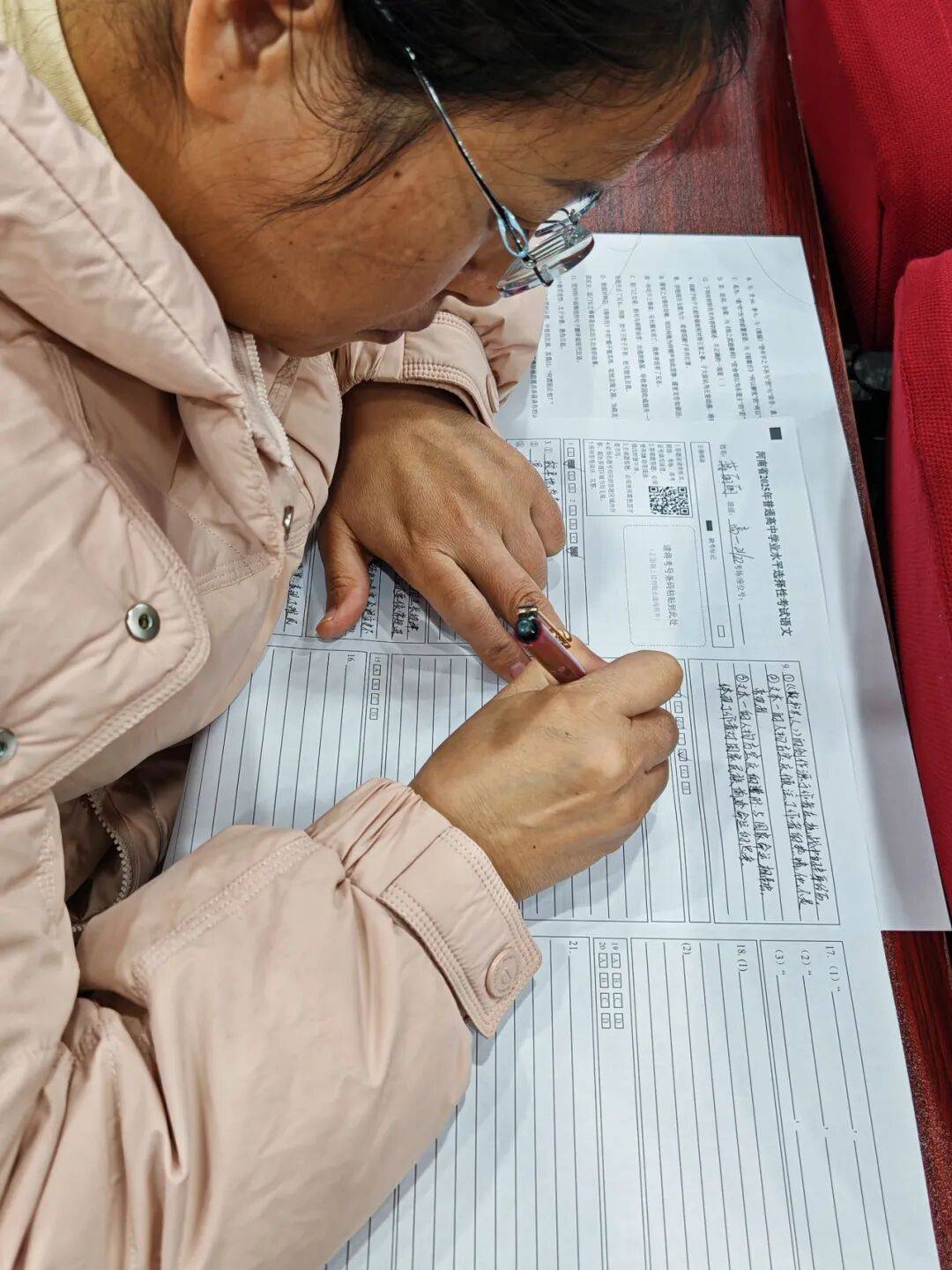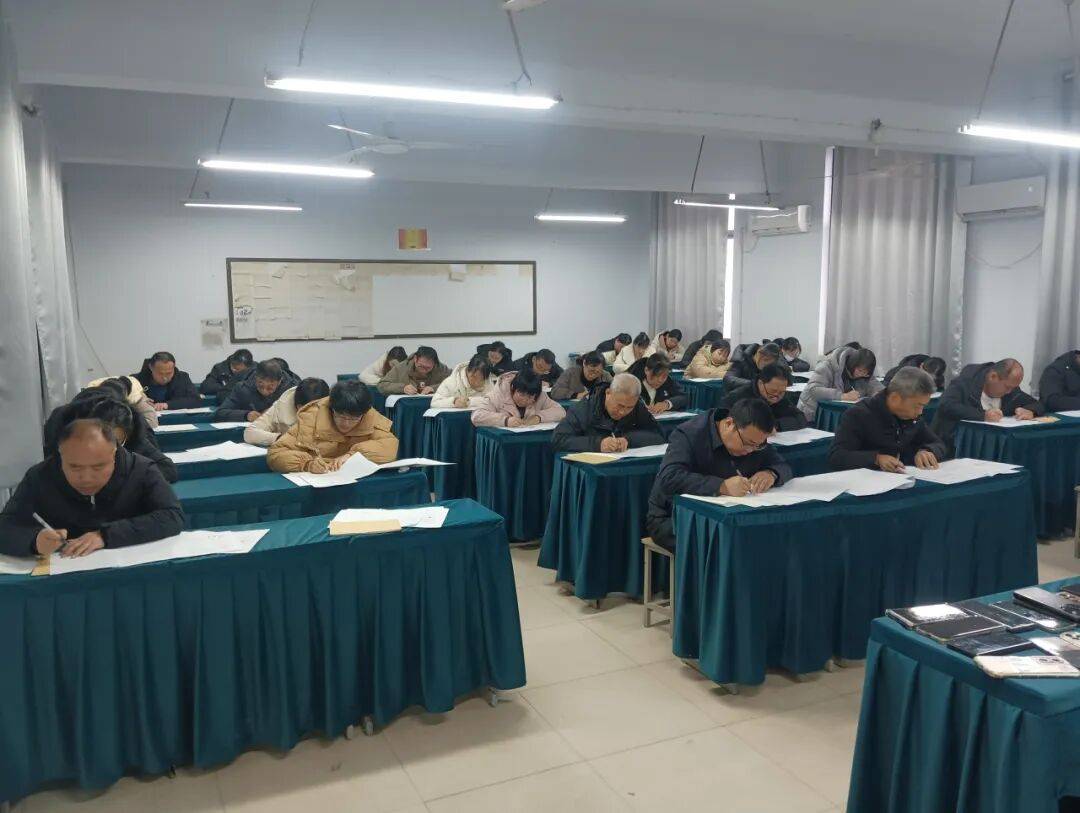 活动开始前,全体教师自觉将手机放置于前台,以严谨自律的态度迎接演练。9时15分,演练正式启动,县政协副主席、一中校长曹荣旺以身作则,与全体任课教师一同以考生身份入座答题。考场上,纸张翻动声与笔尖书写声交织,教师们全神贯注、认真作答,沉浸式体验高考节奏,细致揣摩命题特点,营造出严肃认真的实战氛围。