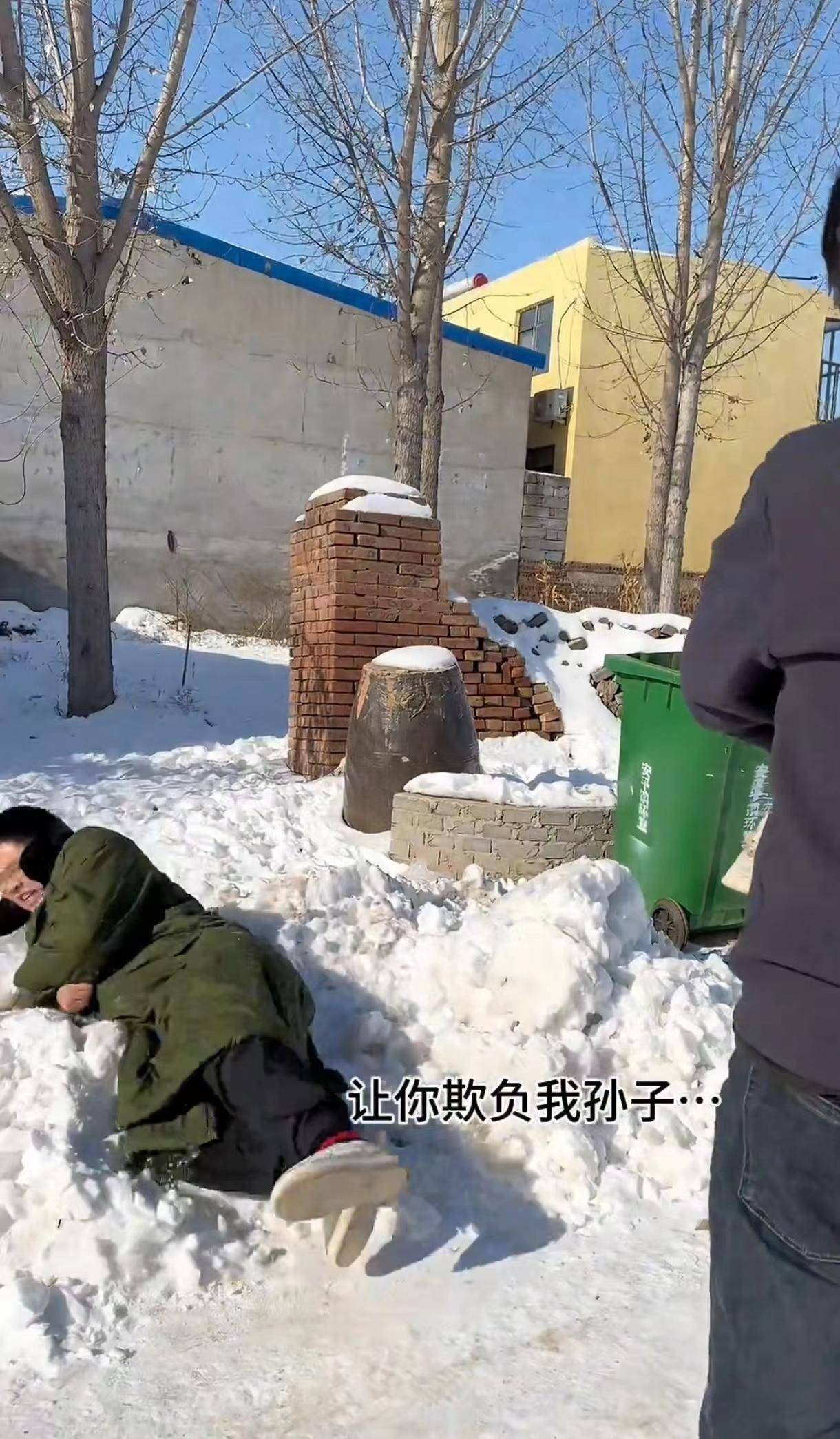 没想到还是没能跑了,被父亲一脚踹倒在雪地里,并且揉了个雪球递给孙子,教孙子扔向倒在雪地里的男子,这才算给孙子“报了仇”,勉强压下了心里的怒火。