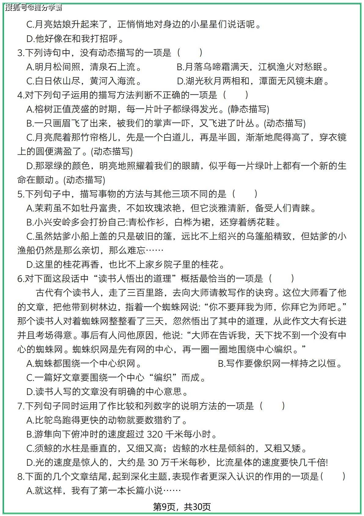 五上语文历年期末常考真题综合小测30页(电子版可打印)